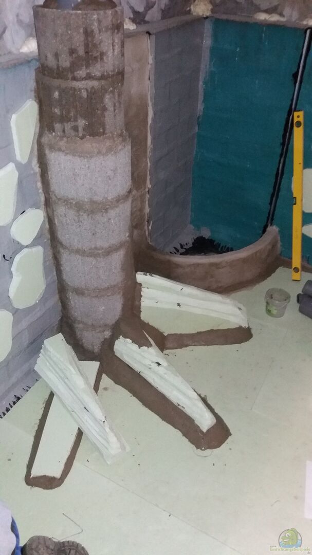 Das Auqarium wurde aus Kalksandsteinen gemauert, mit Dichtschlämme und anschlie??end Impermax abgedichtet. Alles wurde in kompletter Eigenleistung gebaut.