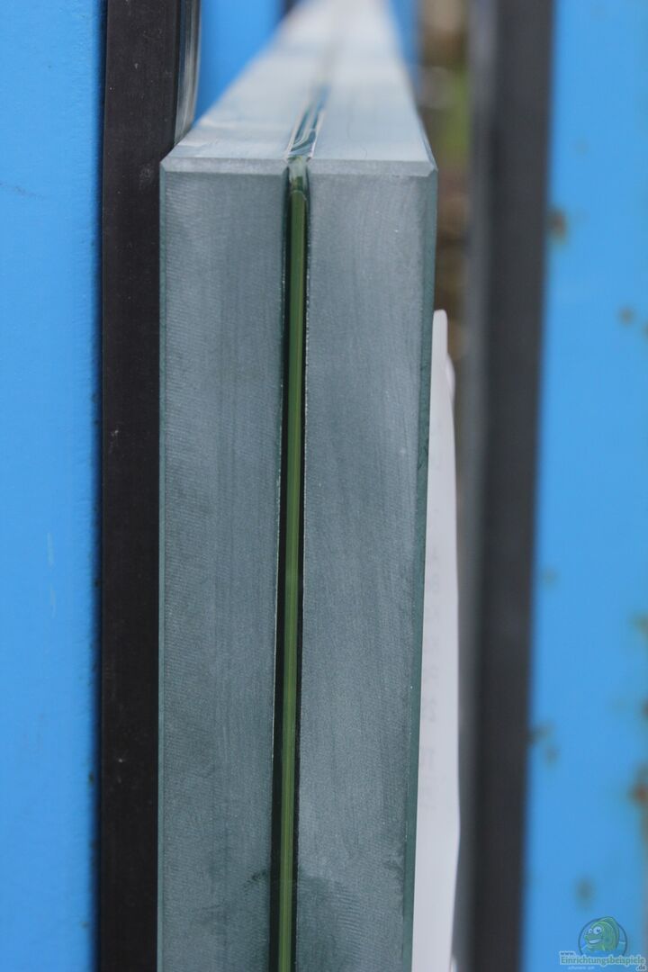 Die Aquarienscheibe hat die Ma??e 290 cm x 100 cm, bestehend aus 2 x 15 mm VSG (Verbundsicherheitsglas) + 1, 52 mm Folie und wiegt rund 220 kg.