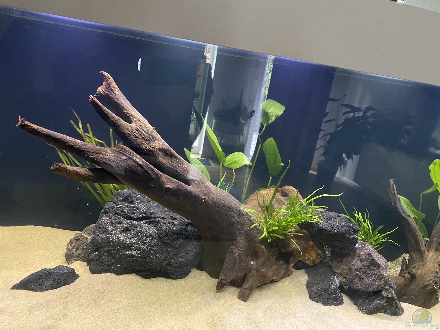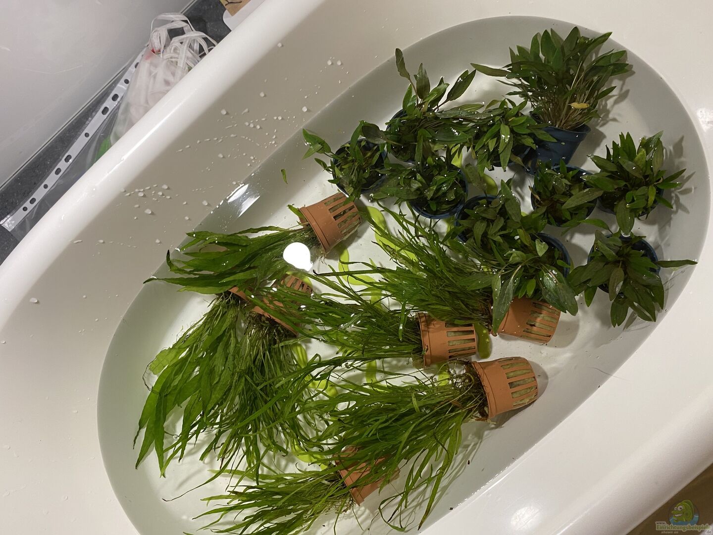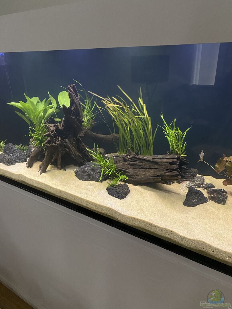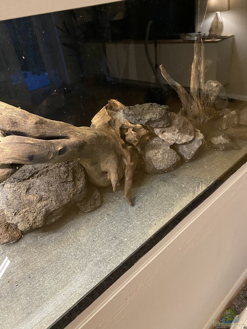 50 KG Sand in feiner Körnung, im hinteren Bereich des Beckens befindet sich auf einem Längsstreifen von ca. 290x25cm ca 40 KG Kies anstatt Sand (hier wurden die Hintergrundpflanzen gesetzt).