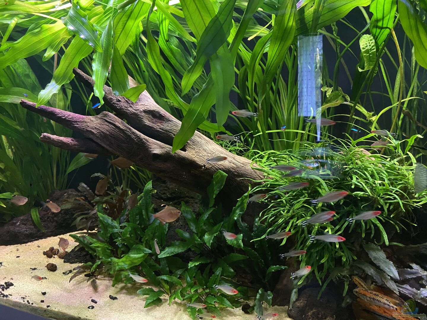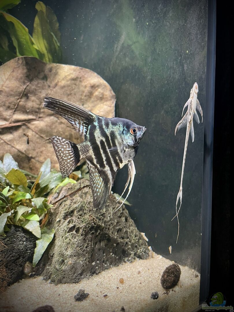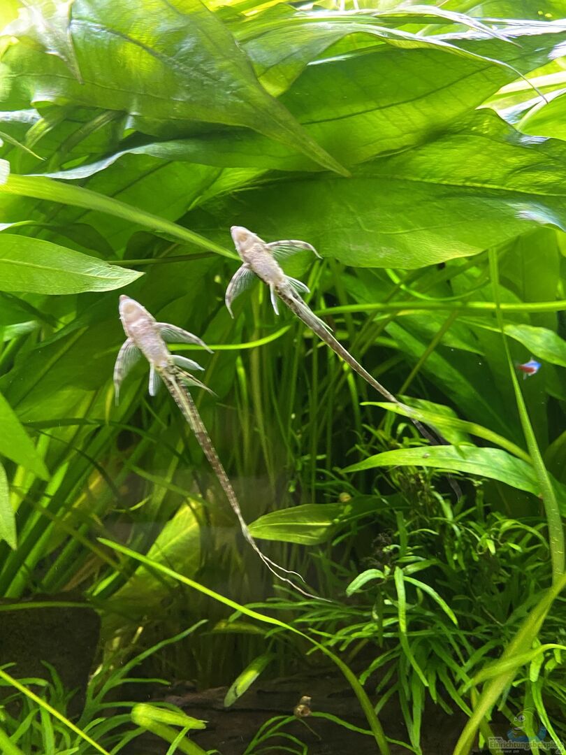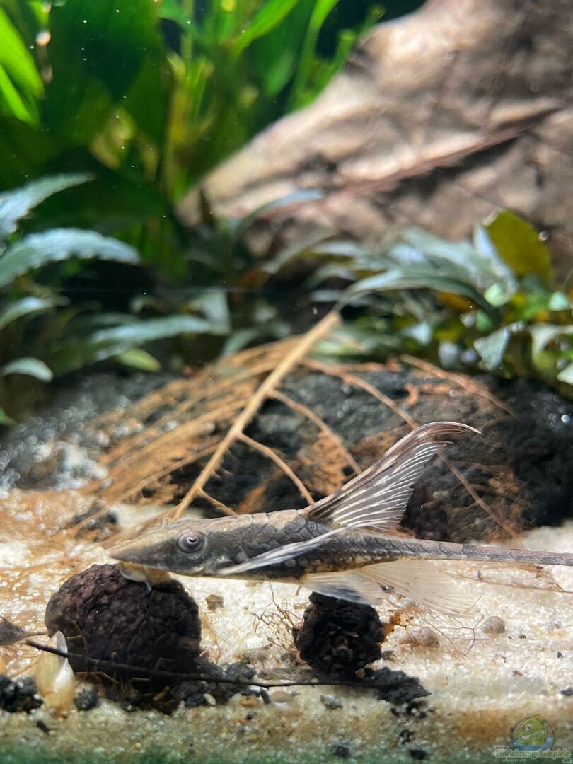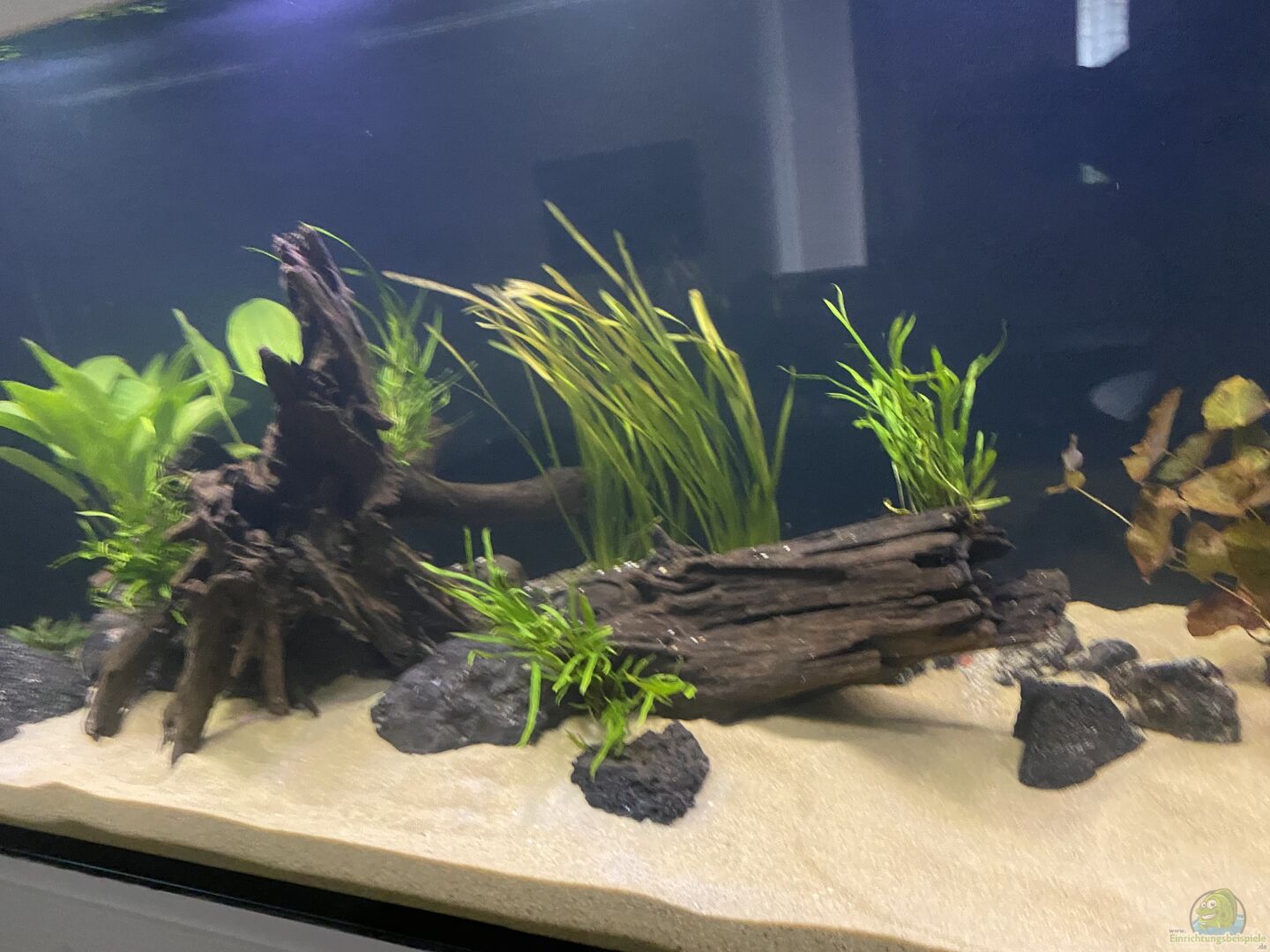 50 KG Sand in feiner Körnung, im hinteren Bereich des Beckens befindet sich auf einem Längsstreifen von ca. 290x25cm ca 40 KG Kies anstatt Sand (hier wurden die Hintergrundpflanzen gesetzt).