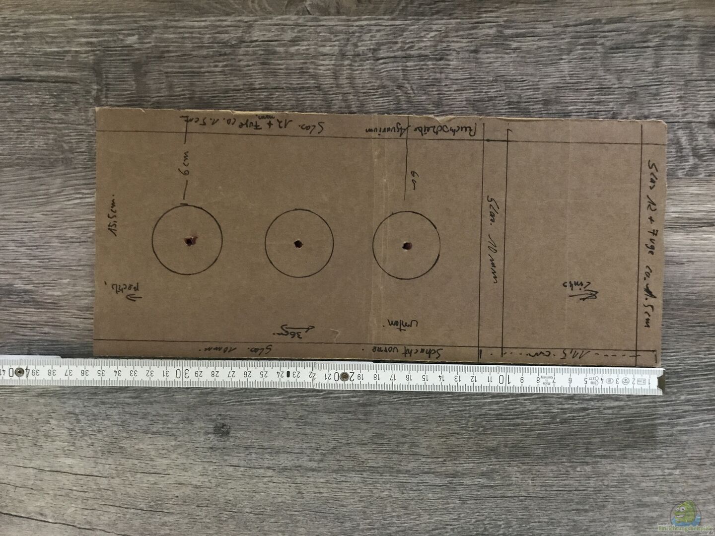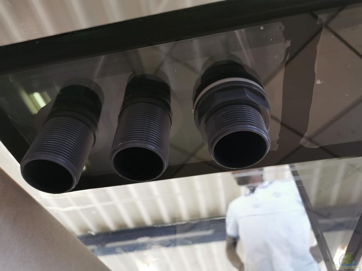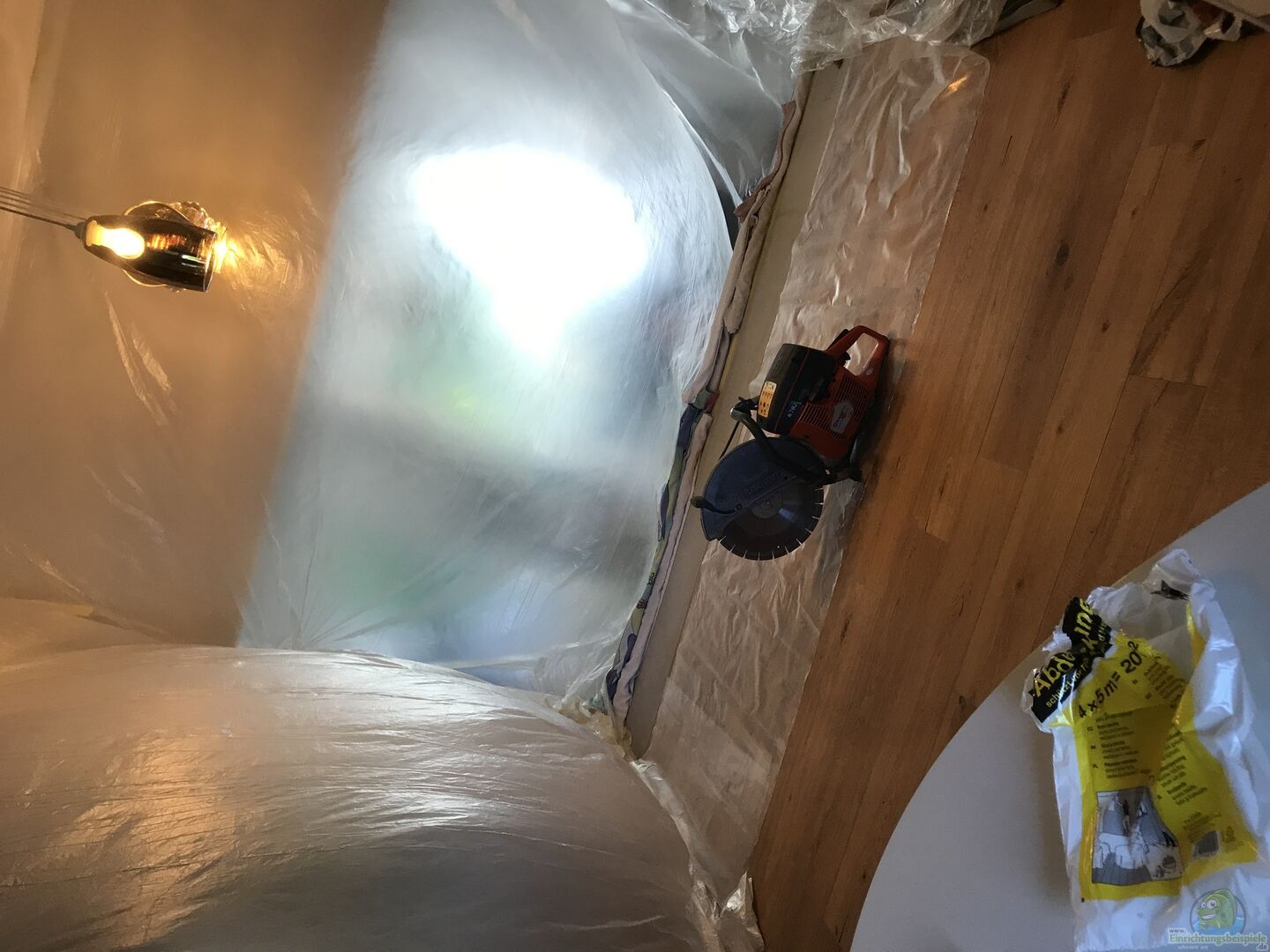 Da das Aquarium in der Küche auf dem Boden steht, mussten umfangreiche Maßnahmen getroffen werden. Der Estrich würde ausgesägt und ein Betonfundament mit der Rohdecke verbunden (Verbundfundament). Das Becken steht auf einer 30mm-starken Siebdruckplatte direkt auf dem Fundament. Zwischen Becken und SBP befindet sich eine Filzunterlage.