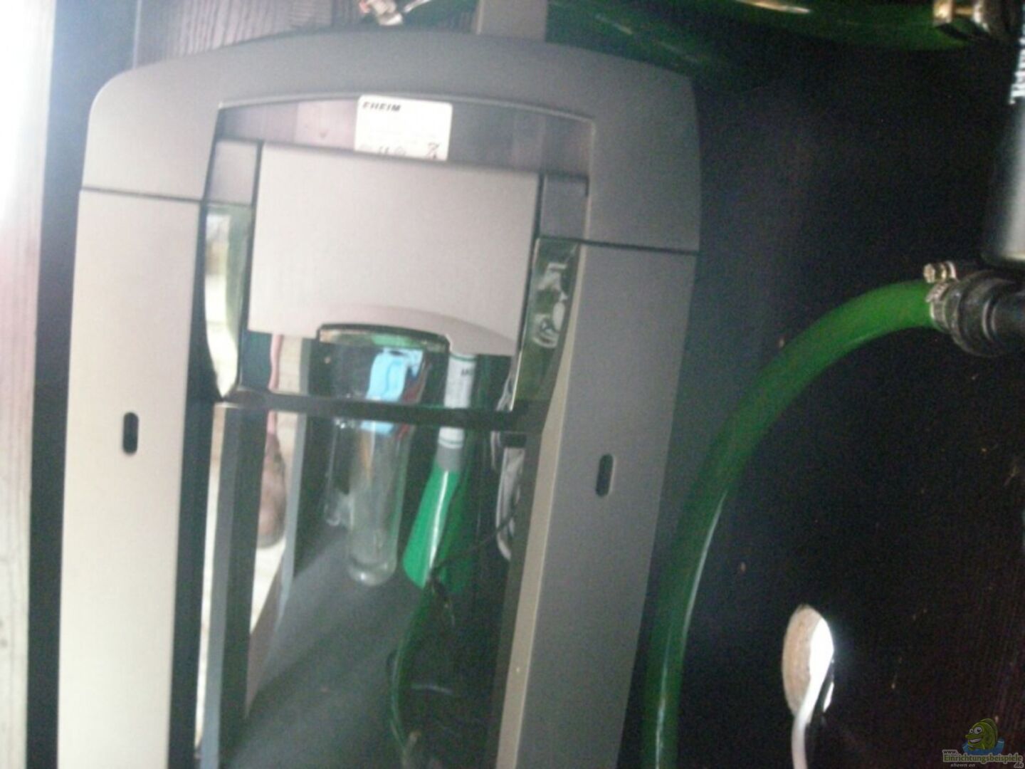 Uni Filter 500 UV zur Feinfilterung, dieser Filter hängt ´verkehrt´ herum im Becken. So geht der Wasserstrahlschräg nach oben und hält mir die Wasseroberfläche frei von einer Kahmhaut.