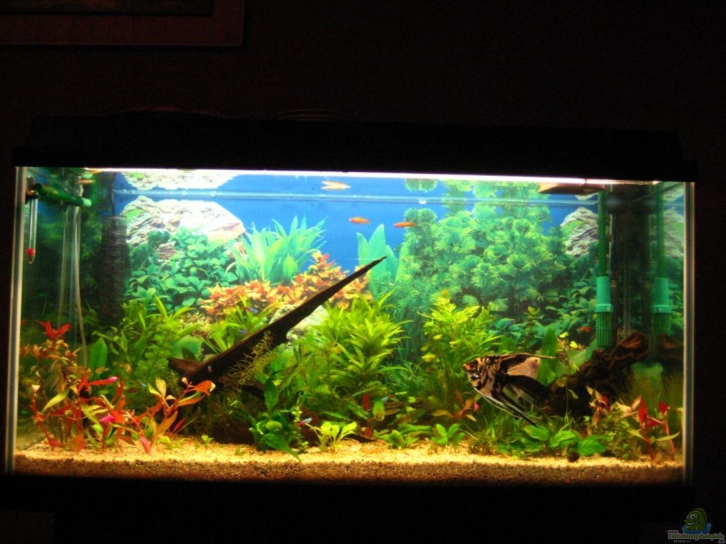 Am 27-28.02.08 Habe ich mein 160Liter Becken gegen ein 200Liter Becken ausgewechselt.Und den besatz mit aller Technik und Kies ins neue Becken gefüllt, dabei habe ich 100liter behalten damit ich nicht 2 wochen warten muss, bis ich die Fische wieder reinsetzen kann.Neuen Nährboden wurde auch nachgefüllt, da der alte sich mit dem kies vermischt hat . Jetzt haben die Fische viel mehr platz und die Skalare können besser schwimmen.
