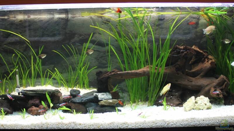 von dem optischen her wirkt den Becken sehr gut. Der Besatz passt eigentlich nicht so gut zusammen. Die Prachtschmerlen werden zu gro? ( bis 30cm) für die Beckengrö?e und sollten in einem kleinen Schwarm von ca. 5 Tieren gehalten werden. Von den Wasserwerten passen Guramis, Fadenfische und Dornaugen nicht mit Neons, Antennenwelsen, Blackmollys und Platys zusammen. Die indischen Glaswelse sollten im Schwarm von 8-10 Tieren gehalten werden. Vielleicht wäre es eine Idee, entweder ein Amerikabecken, bzw. Asiabecken zu machen.