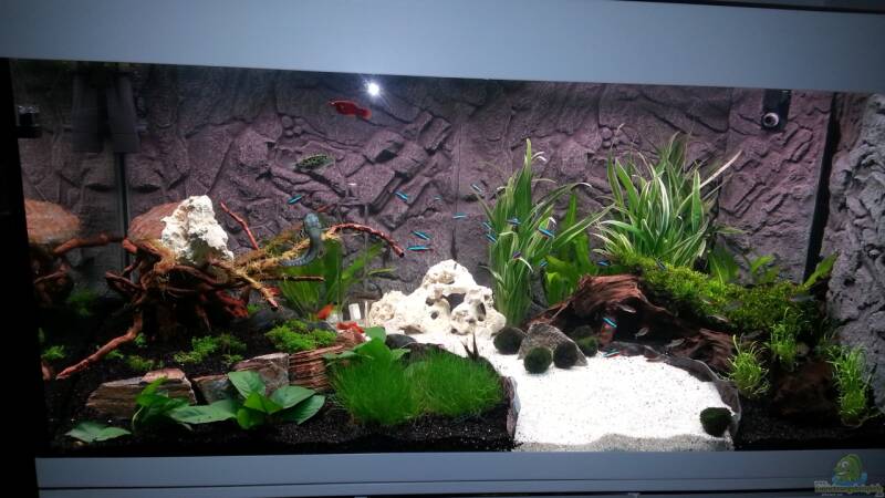 Die Aquarium-Kombination bei Aquariumbau Friedeberg anfertigen lassen.Die Kombination ist in weiss ausgestattet...im Beckenboden sind zwei Bohrungen für einen Topffilter gemacht worden....als Beleuchtung ist ein Balken mit zwei T5 Röhren eingebaut...