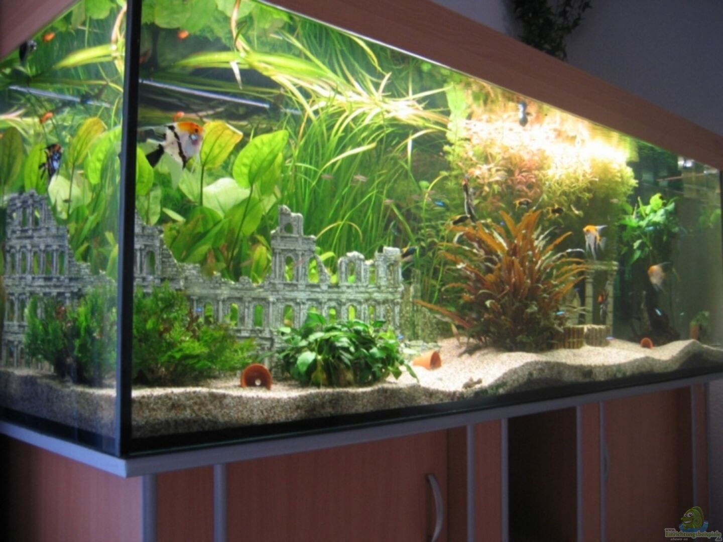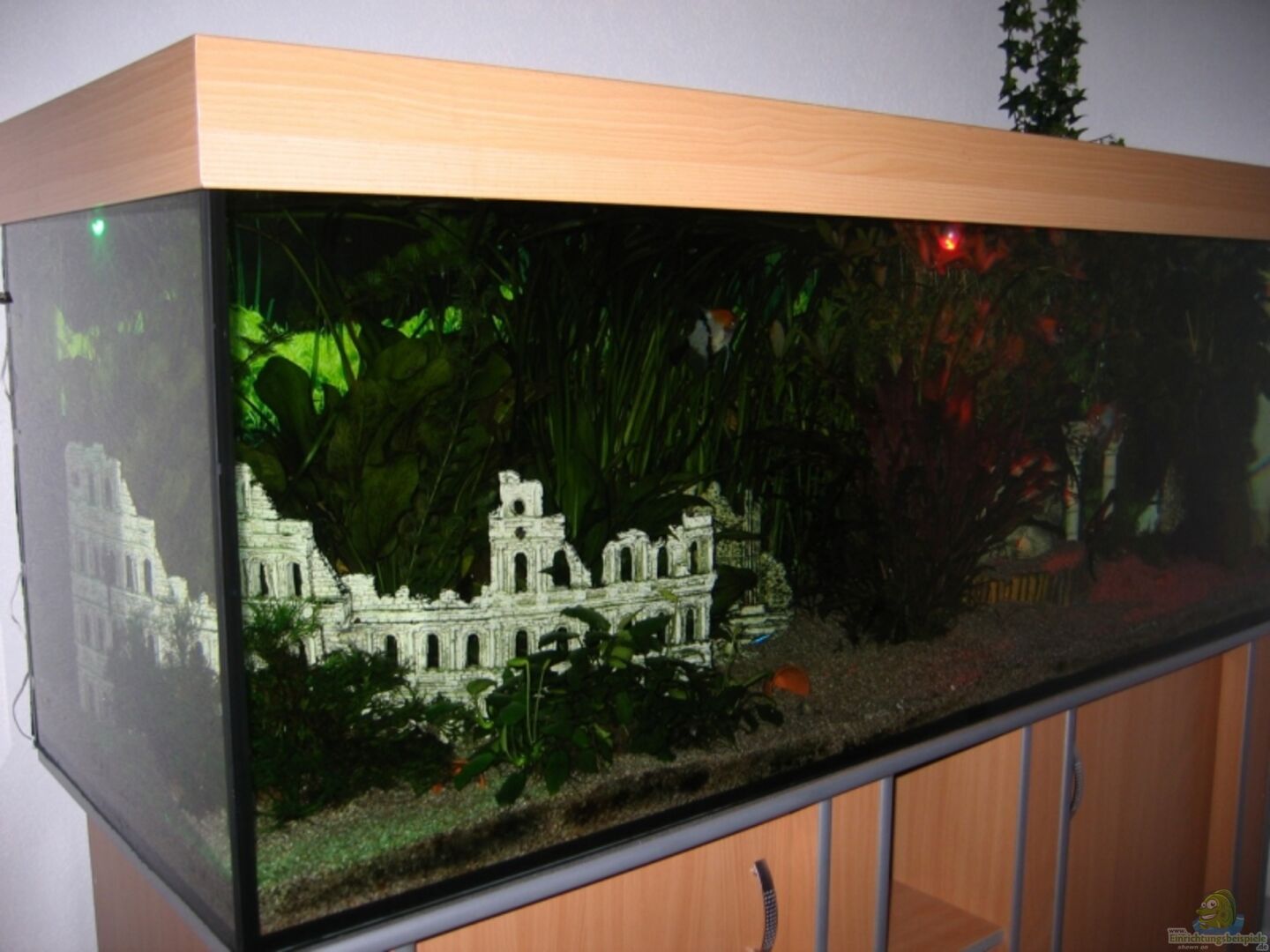 ein schönes, vor allem gro?es Becken hast Du da. Das einzigste, was mir persönlich nicht gefällt, sind die künstlichen Einrichtungsgegenstände. Aber das ist schlie?lich Ansichtssache und die Fische wirds kaum stören.