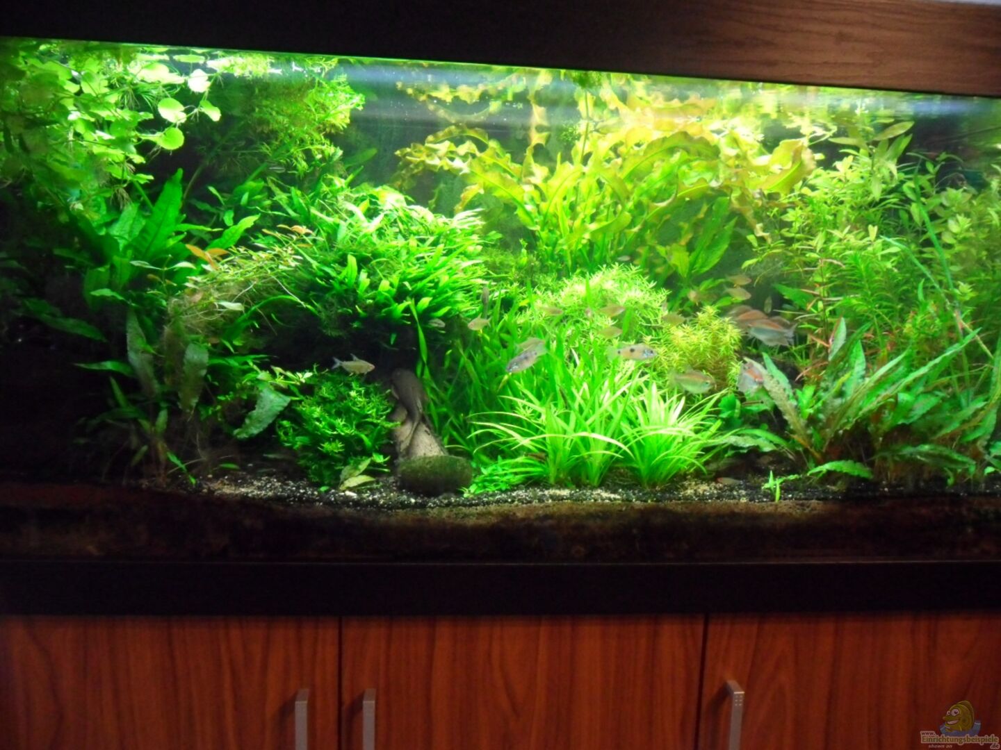 Nun habe ich ein Neuanfang vorgenommen - der letzte wohl als Aquarianer - mit Fischen, die ich in meiner langen Zeit der Tierpflege besonders schön fand. Demnach wieder ein Gesellschaftsbecken. Leider lie?? sich die Anschaffung von Angolabarben nicht realisieren - dafür sind schwarze Neon eingezogen.