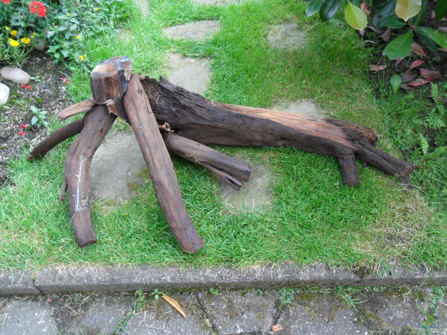Nach langem Zögern habe ich das gro??e Moorkienholz entfernt. Es war einfach doch eine Nummer zu gro??. Durch sie lie?? sich der Pflanzenaufbau nicht so verwirklichen wie ich es mir vorstellte. Au??erdem war es nun ein halbes Jahr untergetaucht und hatte nach Lösen der Granitsteinhalterungen immer noch Auftrieb.