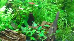 Es ist noch eine Gruppe Perlhuhnbärblinge eingezogen. Dabei war ein Endlerguppy-Jungtier. Ich konnte es nicht mehr loswerden und habe ihm noch zwei Weibchen dazu geholt.