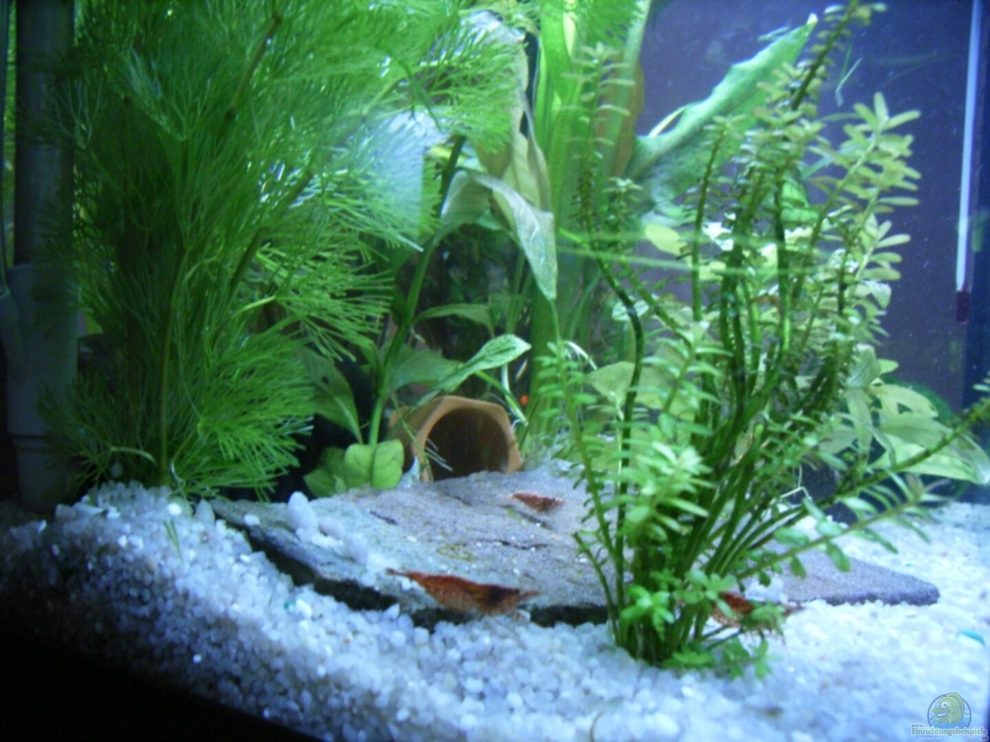 Zur Zeit ist noch ein Montezuma Zwergflu??krebs zum Ablaichen in dem Becken zu Gast, daher auch die Schalen.