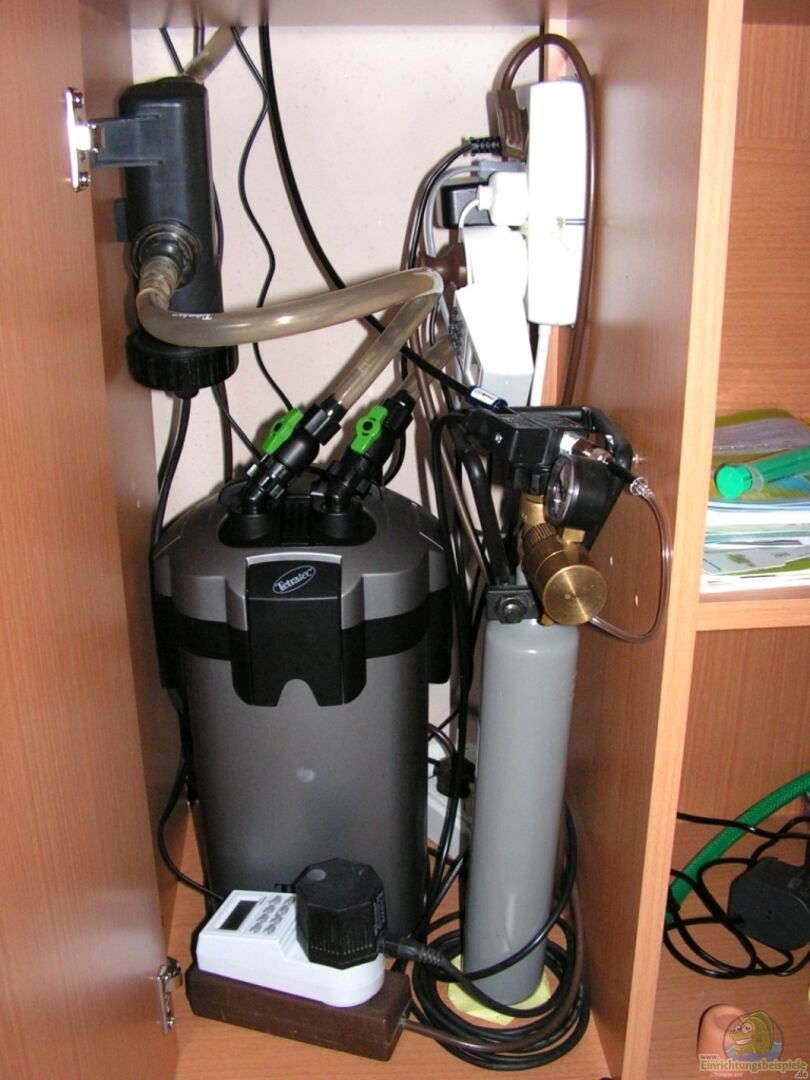Wasserwechsel: Wöchendlich 80 L, davon 55 L Osmose, beimischung von 20ml Torfextrakt.