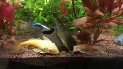 dieser fisch fegt am liebsten quer durch das ganze Aquarium und macht den anderen das futter abspenstig, deshalb ist es wichtig dieses ein bisschen zu verteilen dann ist der sü??e überfordert und kann nicht alle stellen bewachen ;) eine höhle ist von Vorteil, auch wenn sie immer nur kurzzeitig genutzt wird. Gro??blättrige pflanzen werden untersucht und die Scheiben werden auch abgesaugt. Es sieht oft aus als würden die drei ihre Wohnung putzen ; ) (nach 5 Monaten hat der einzelfisch nun 2 freunde bekommen die jedoch noch kräftig wachsen dürfen; leider sind diese inzwischen gestorben bzw. Verschwunden.