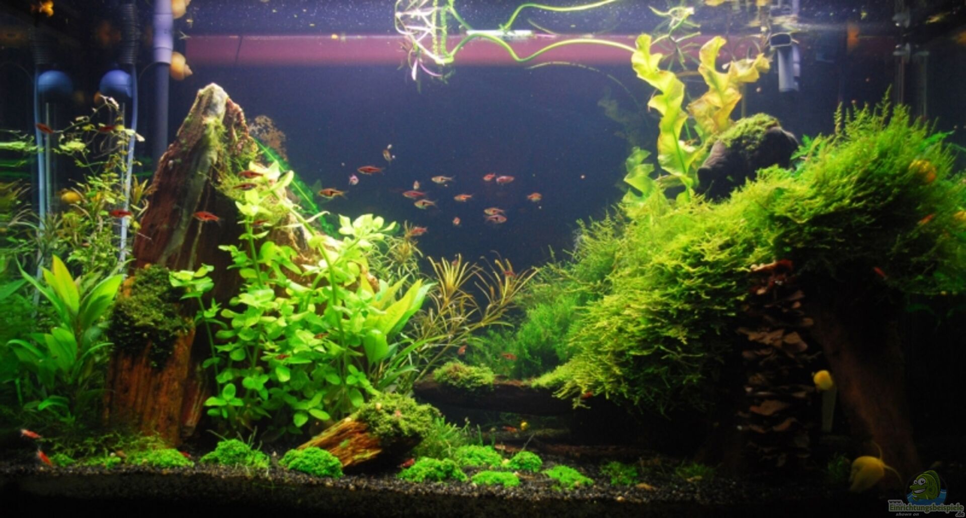 Das Aquarium ist jetzt seit Anfang August 2008 in Betrieb mit einigen Moosen, komplette Bepflanzung Ende August. Fischbesatz Mitte September 08.