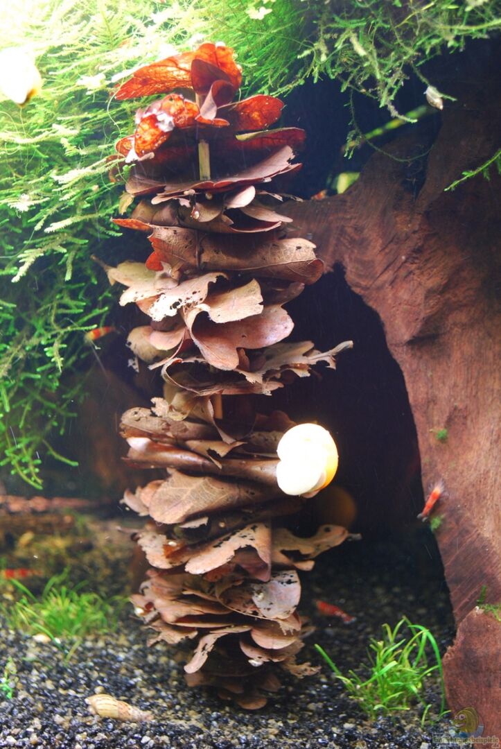 Ein interessanter Tipp für alle Nelibesitzer: Wir haben einen echten Laubbaum im Aqua ;o). Man nehme einfach 15 bis 30 Laublätter und spie??e sie nacheinander jeweils zweimal auf einen Schaschlik-Holzspie??. Diesen dann einfach in den Bodengrund stecken. Die Nelis lieben es einfach und es sieht schick und aufgeräumt aus.