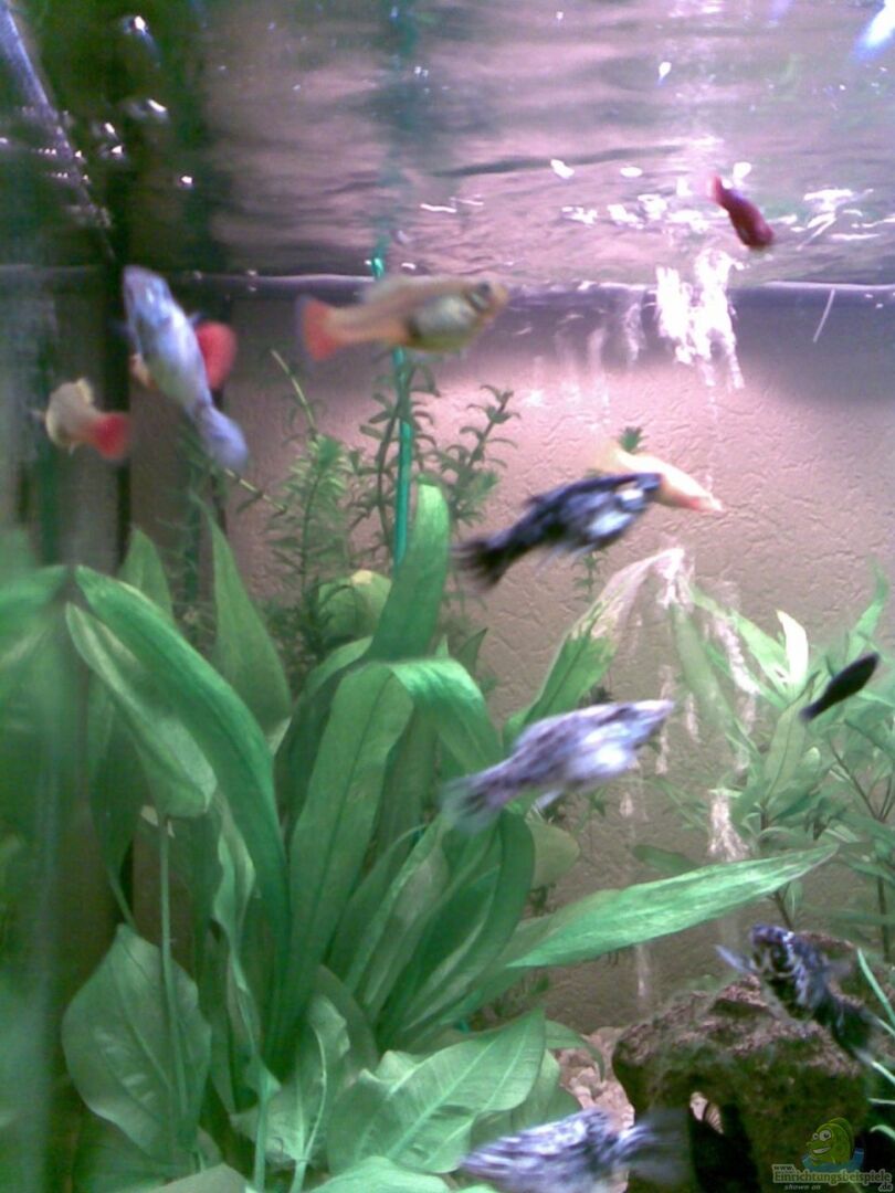 alle 2 Wochen zu je 30 %. Das Reinigen vom Boden wird durch eine Mulmglocke ausgeführt. Danach Zugabe von Aquasafe.