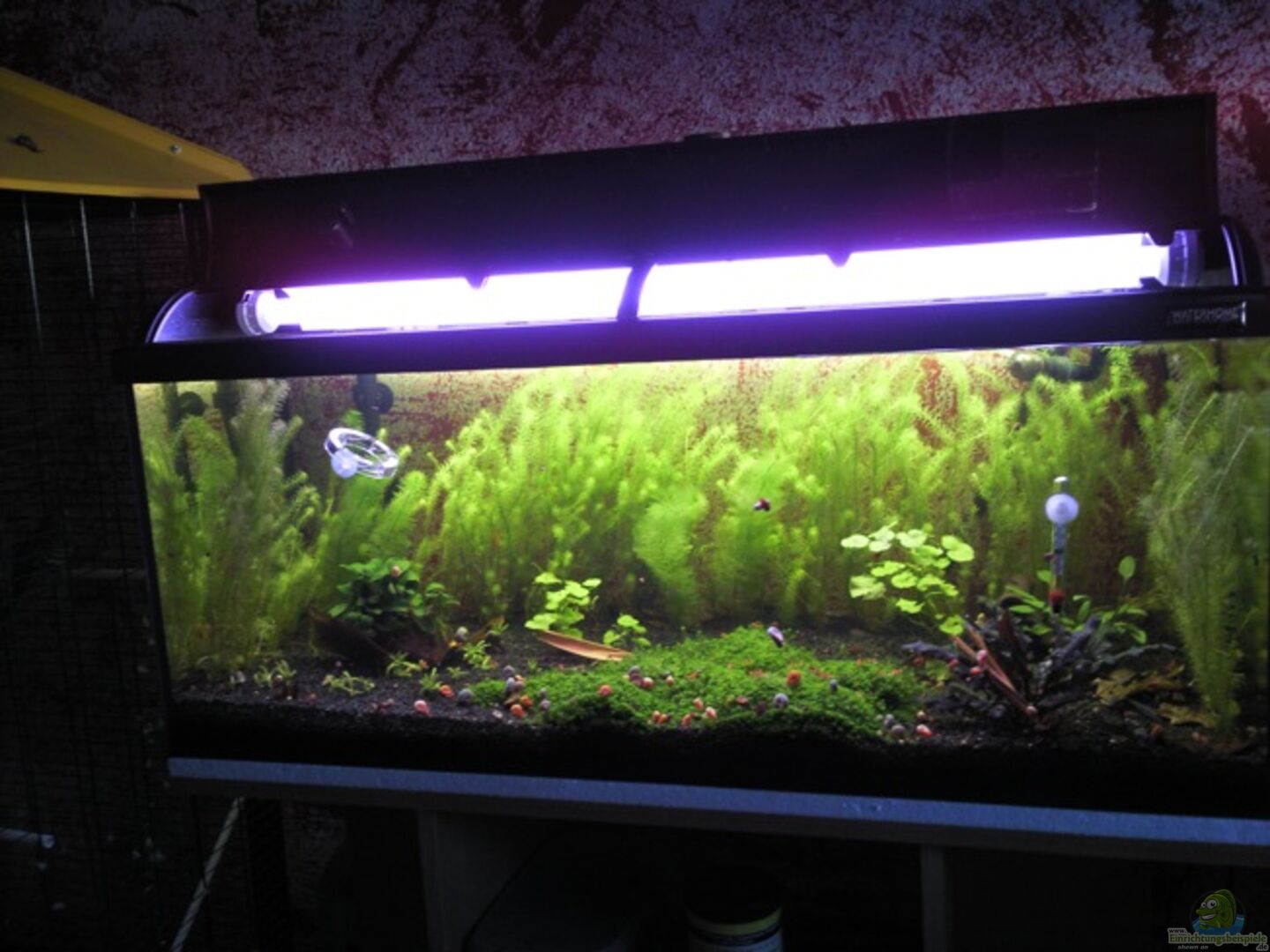 Die Bärblinge werden in Kürze auch umziehen. Möchte ein reines Wirbellosenbecken. Das Becken wird nächste Woche noch umgestellt. Da werde ich die Chance nutzen und die Rückwand schwarz streichen. Mag diese bedruckten Folien nicht so.