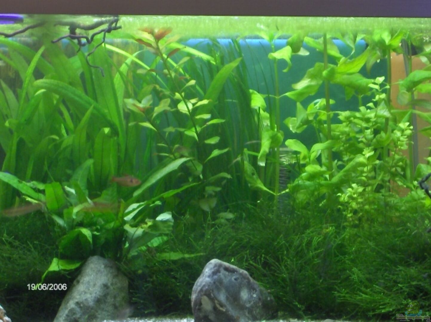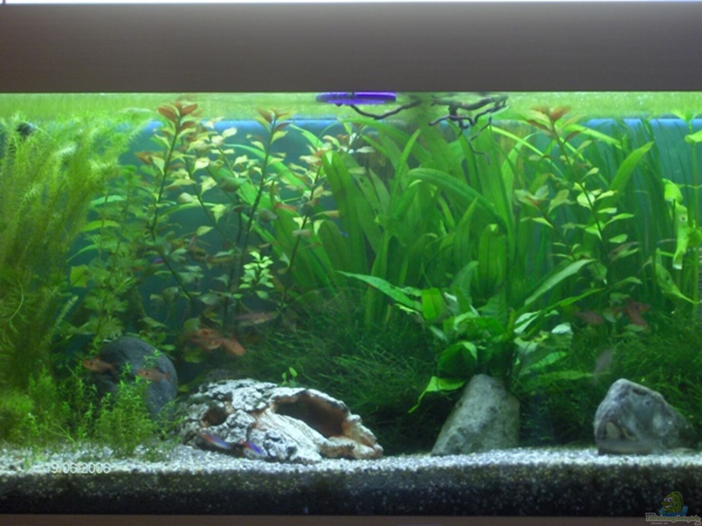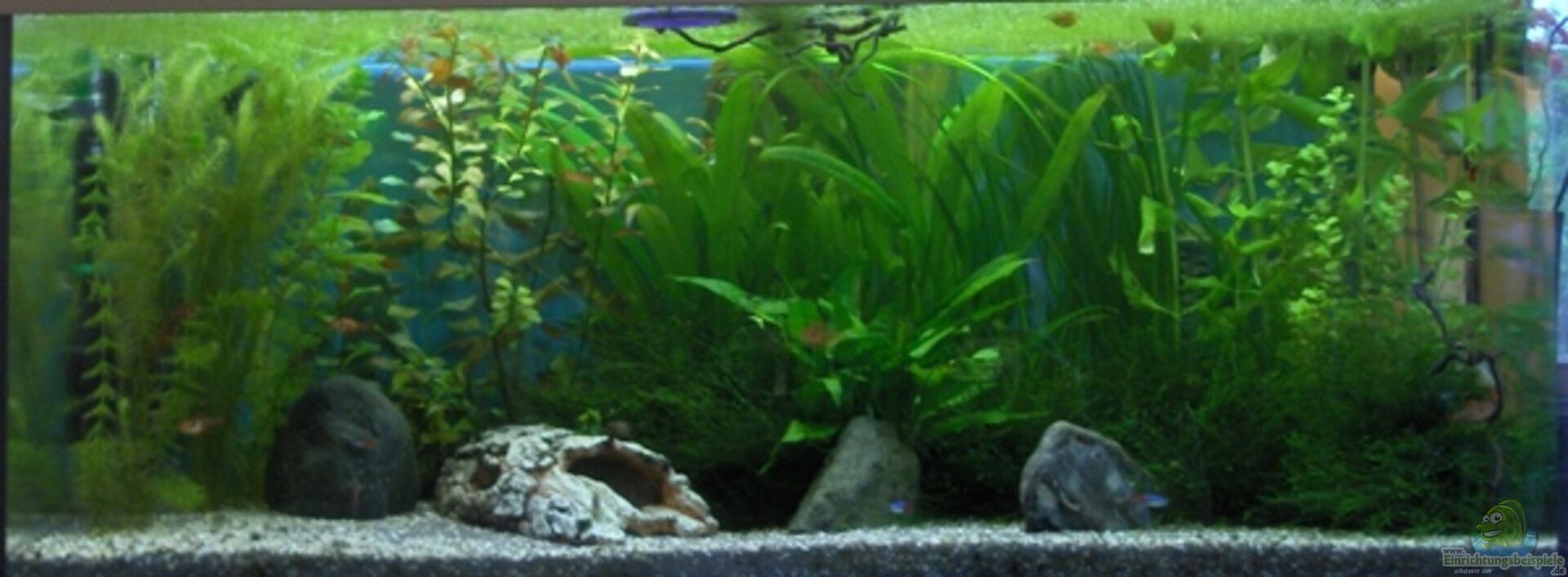 Die Beckenbeleuchtung wurde ca. 10 cm höher gehängt, befindet sich nun etwa 20 cm über dem Becken... der Unterschied ist klar erkennbar - die Fische schwimmen weiter oben, weniger Algen und es ist nicht mehr so grell. Sieht somit doch wesentlich natürlicher aus...