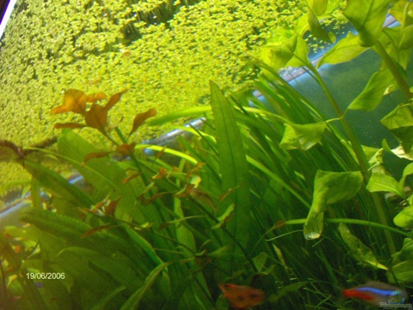 Also Wasserlinsen sind offenbar nicht nur schnellstwachsend, sondern das am schnellsten Wachsende was ich je gesehen habe. Der Effekt im Becken ist absolut faszinierend. Das Licht hat sich gänzlich geändert und die Fische fühlen sich pudelwohl.