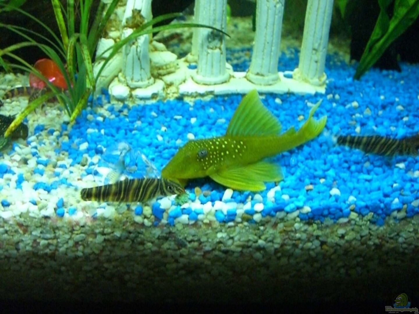 für meinen Geschmack dürften es mehr Wasserpflanzen sein. Ebenfalls Geschmacksache ist der blaue Kies und die "griechischen Säulen" solange sie keine Schadstoffe ans Wasser abgeben. Die Wasserwerte sind weder für die Guppys ideal (untere Grenzwerte) für die Ringelhechtlinge jedenfalls nach der Literatur ungeeignet (pH 6, 5 und dGH 5. Die Dornaugen und die meisten Schmerlen bevorzugen ebenfalls weicheres und leicht saures Wasser. Auch wenn die Dornaugen kaum zu sehen sind, werden sie beim Beatz mitgerechnet ;-))) . Auf die Endgrö?e bezogen hast Du fast doppelt soviel Fisch, wie für ein stark besetztes Becken angegeben ist. Ich würde zumindest die Guppys rausnehmen. Eine Rückwand z. B. über hochwüchsige Pflanzen würde den Gesamteindruck heben. Kommen die Welse und Dornaugen mit einer Höhle zu recht?