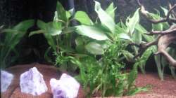 mittlerweile mit zwei halben Kokusnussschalen und auf der Wasseroberfläche schwimmenden Pflanzen