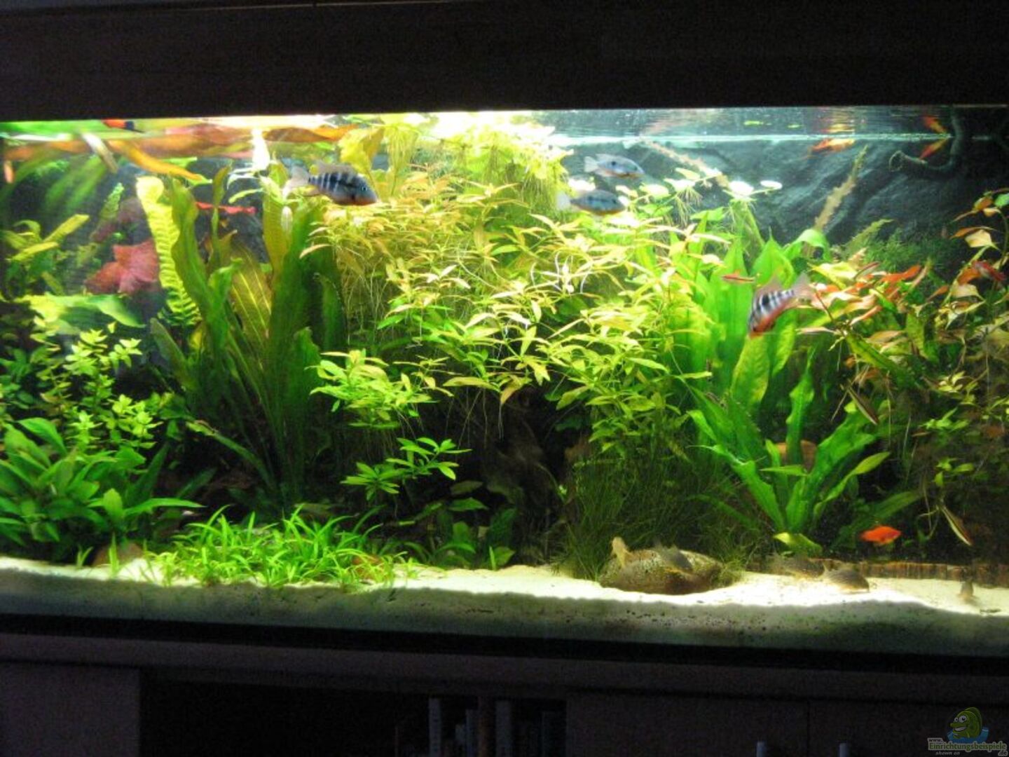 Optisch schön bepflanztes Becken! Mich wundert nur dass das so ist bei dem Besatz: die Feuermaulbuntbarsche sind ja doch recht ruppig was Interieur und Mitbewohner angeht (vor allem in der Laichzeit sind's ja echte Stinkstiefel!). Auf den Fotos sieht es aber fast so aus, als seien sie noch nicht ausgewachsen? Da du außerdem 4 hast (ich nehme mal an 2 Paare?) und noch Purpurprachtbarsche, bin ich mir nicht sicher ob das auf Dauer reviertechnisch gut geht... Außerdem erscheint mir die Temperatur ein wenig zu hoch.