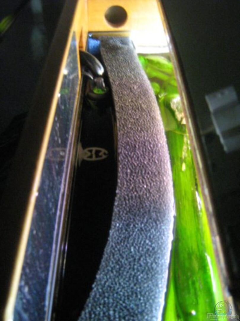Absaugung läuft über Au??enfilter JBL Cristal Profi 500, gedrosselt auf etwa 900 -1000 l/h, bestückt mit Zeolith u. Filterwatte