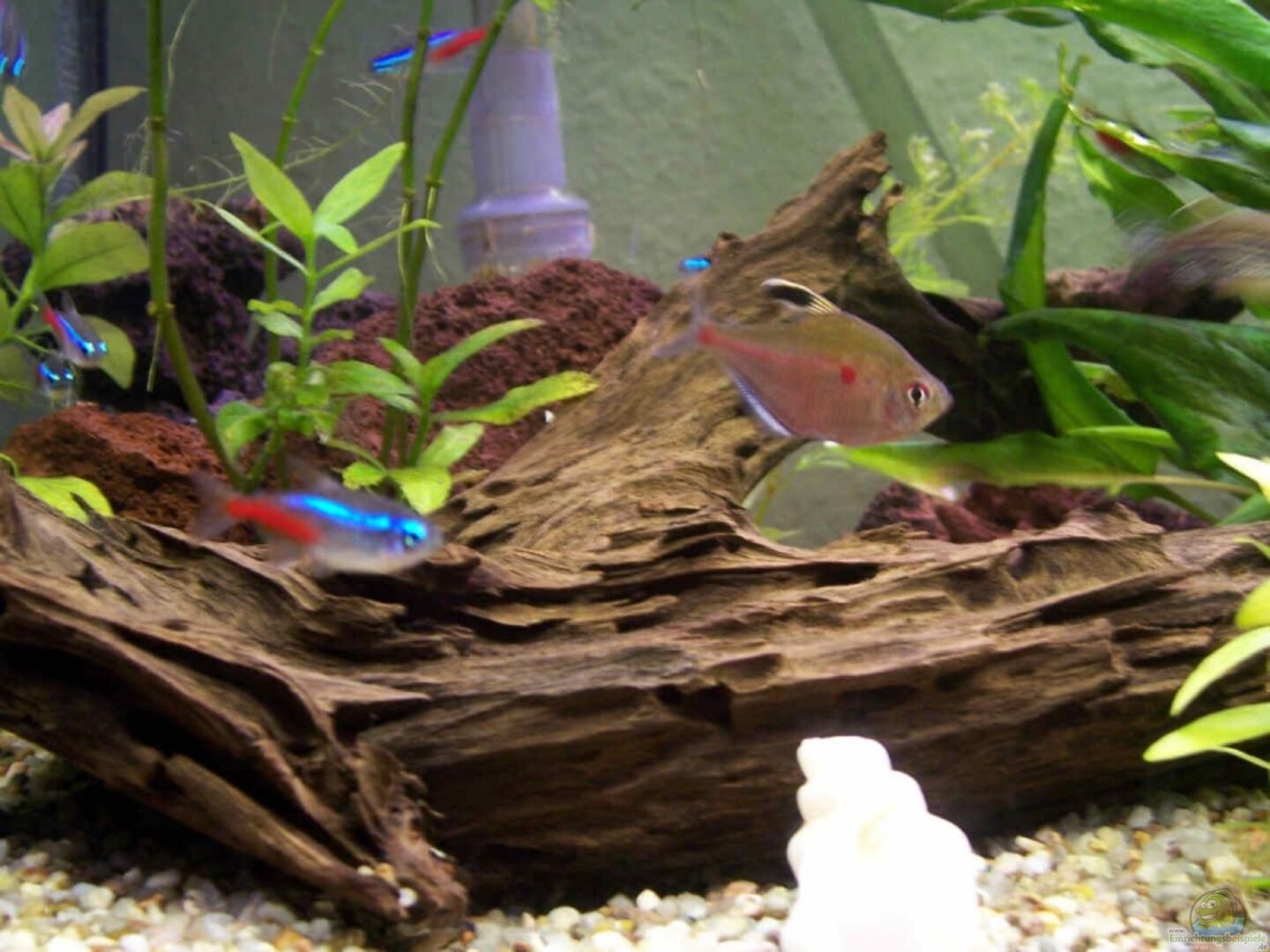 Den Käfer mögen die Fische sehr gerne, schwimmen da gerne rein da er ne gute Höhle darstellt :) Die Pflanzen waren ein Set von zooplus, abgestimmt auf die Aquariumgrösse. Nur leider können wir jetzt die Bezeichnungen nicht mehr zuordnen..aber das lernen wir auch noch ;) Der Kies ist ziemlich rund, nicht scharfkantig. Die Garnelen sind super Algenfresser, nach der Einrichtung hatten wir leichte Probleme und dank der Garnelen hat sich das schnell erledigt. Danke für den Tip mit den Zebrabärblingen...werden wir mal drüber nachdenken! Und eine Rückwand anbringen...