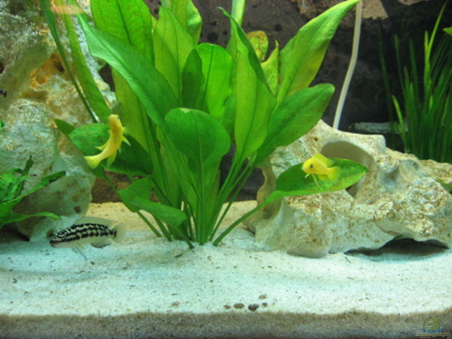 Ich wei??, dass es ungewöhnlich ist, Platies mit Tanganjikabarschen zu halten, aber die vertragen sich echt gut, zumal die Platies nicht in die Höhlen gehen und eher im oberen Bereich zu finden sind.