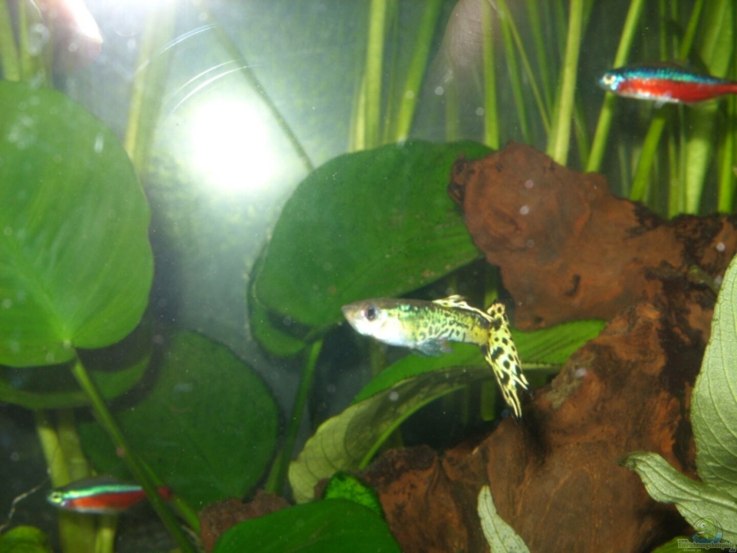 Die Neons sind als Schwarm zu wenig, wenn möglich aufstocken.Die Wassertemperatur ist für die Guppys zu hoch, würde vorschlagen 25°C müsste jedem Beckeninsassen gerecht werden.