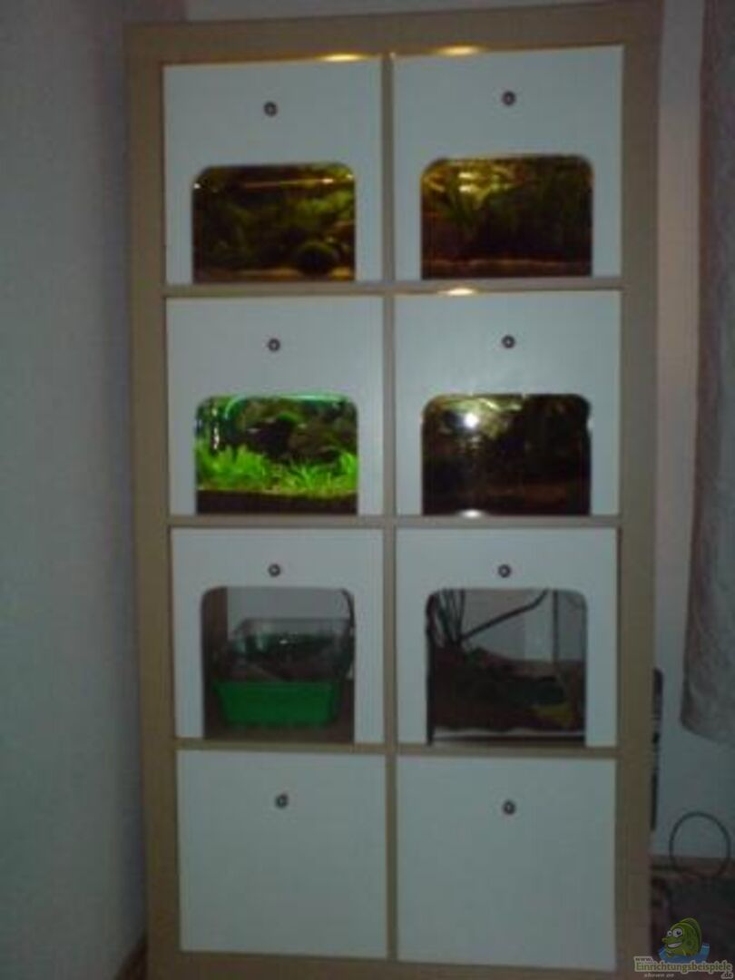 das geht jetzt ja gar nicht: vier Skalare im 12-Literbecken sind so, als wenn man eine Kuh in einen Hühnerstall sperrt. Die Skalare brauchen ein Meterbecken und die Neons 60 cm Minimum. Das ist au?erdem gar nicht zulässig, ein solches Minibecken mit Fischbesatz. Es gibt, wenn`s schon Fische im 12-Literbecken sein müssen, geeignete Zwergfische (Boraras) mit ca. 2 cm Länge und davon nur wenige. Ich würde das schleunigst ändern, weil der übrige Eindruck gar nicht so schlecht ist.