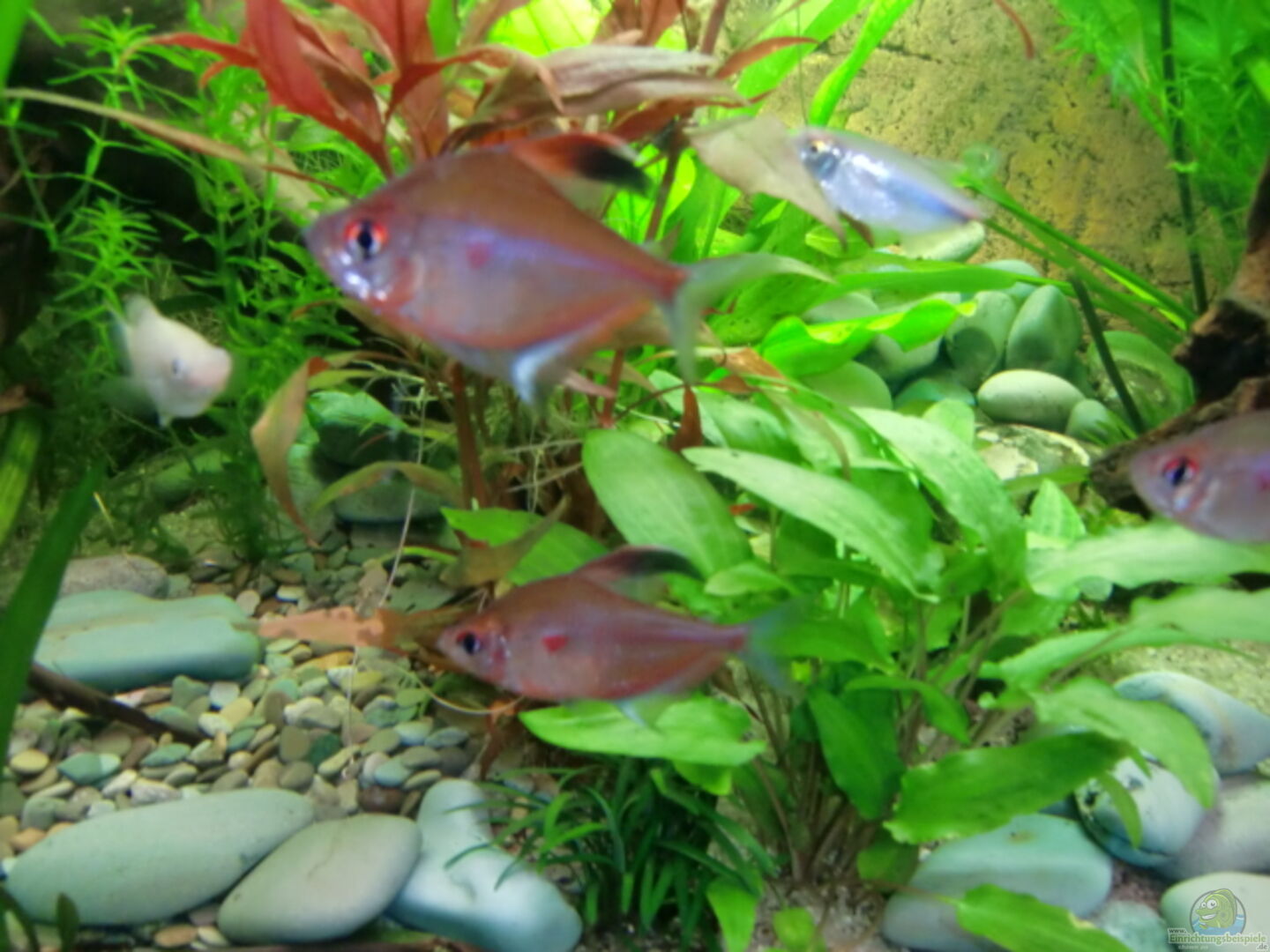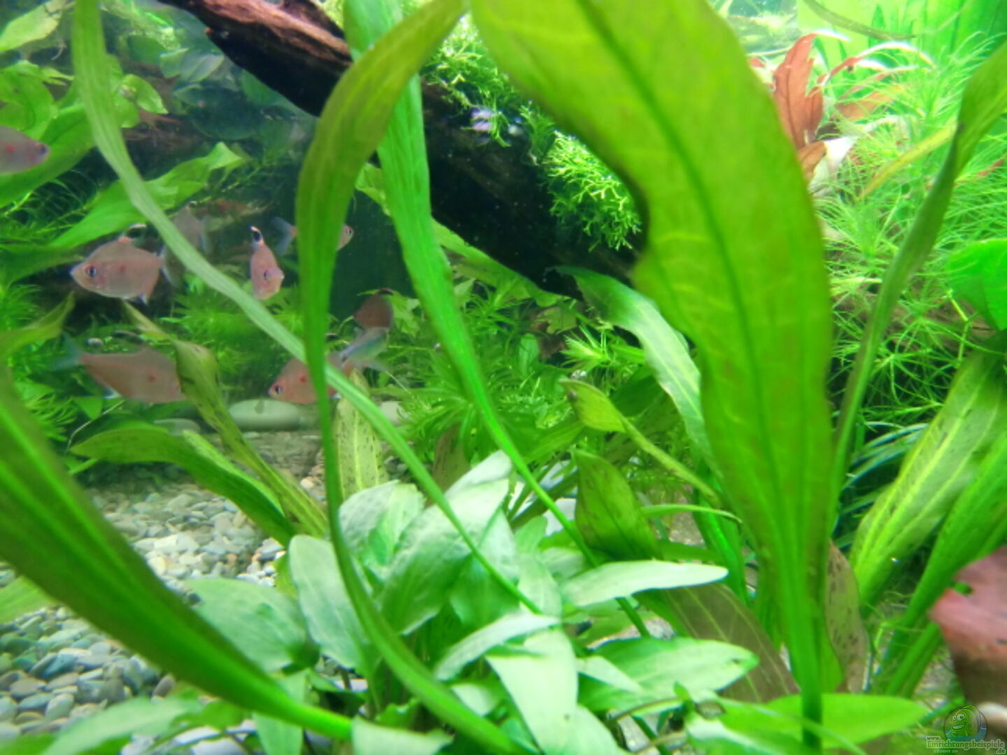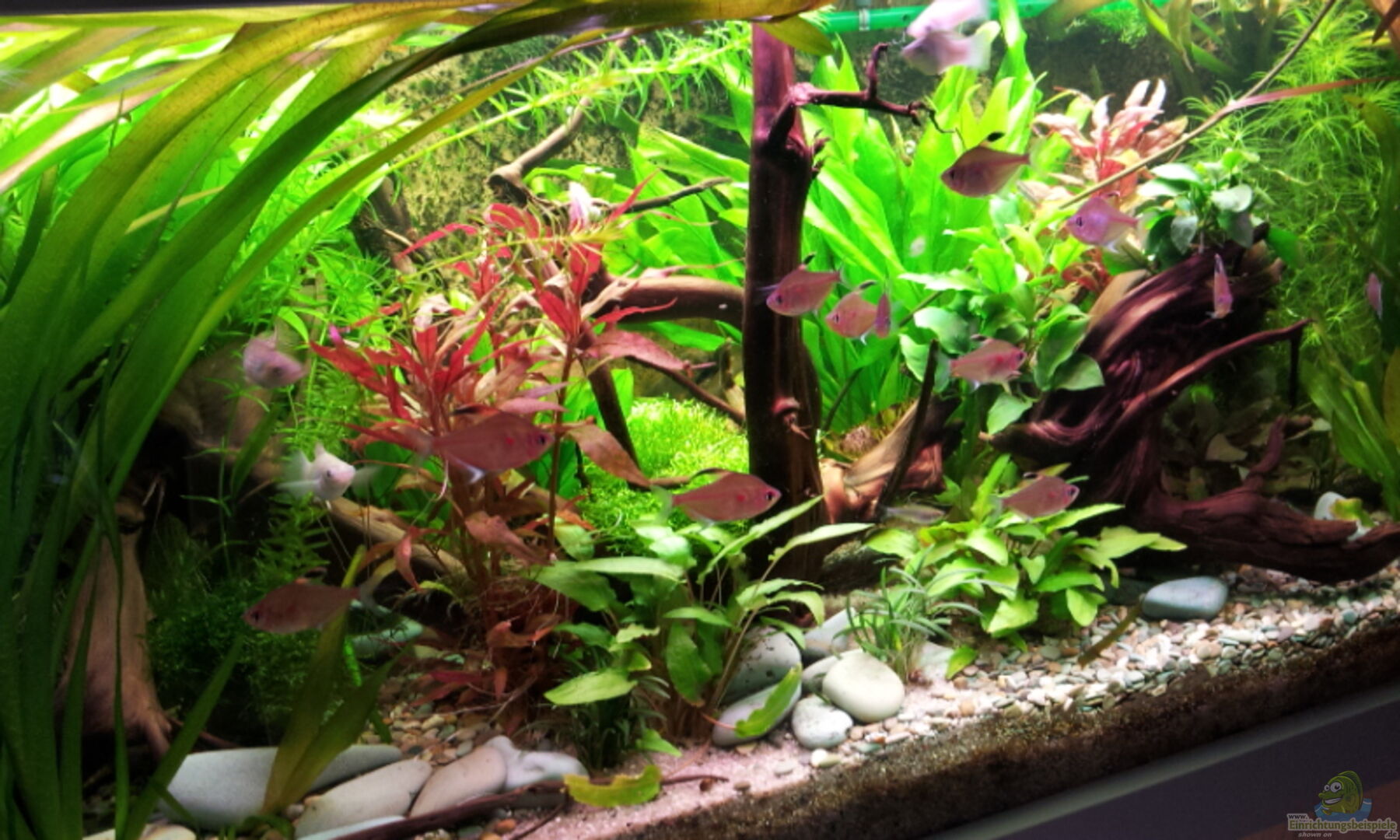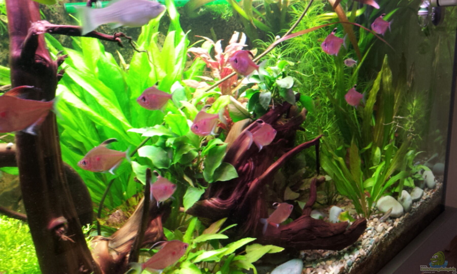 Deine Kardinälchen mögen ja Becken mit dichter Bepflanzung, wobei aber auch auf genügend freien Schwimmraum zuachten ist.