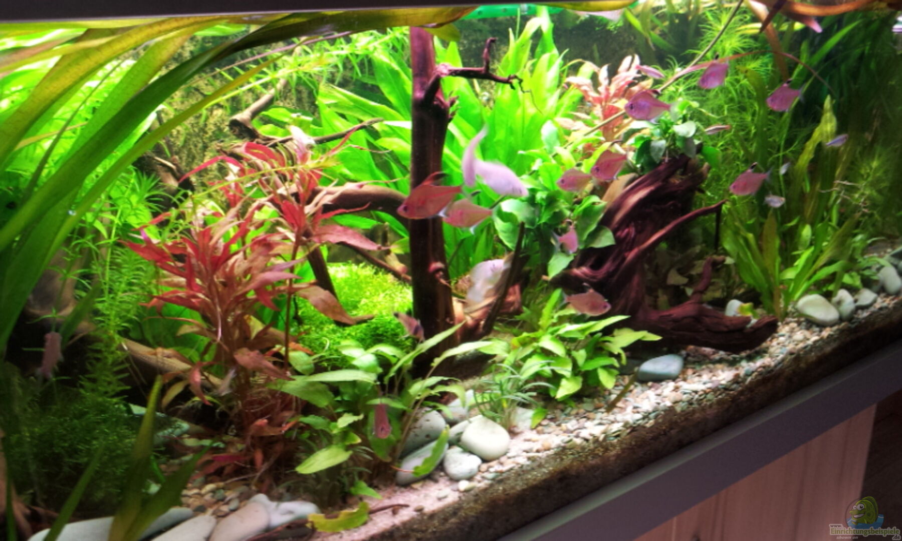 Ein sehr schönes Aquarium. Mit sehr viel Interesse eingerichtet. Was so alles