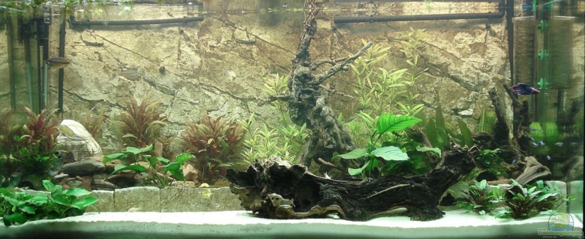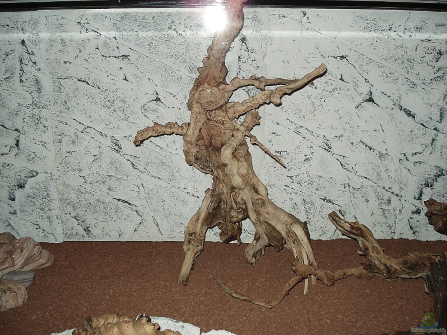 01.02.2008 Die Rückwand wird eingeklebt, die Terrasse wird eingeklebt, Bodengrund, Sand, Kies und die Wurzeln werden trocken ins becken gegeben