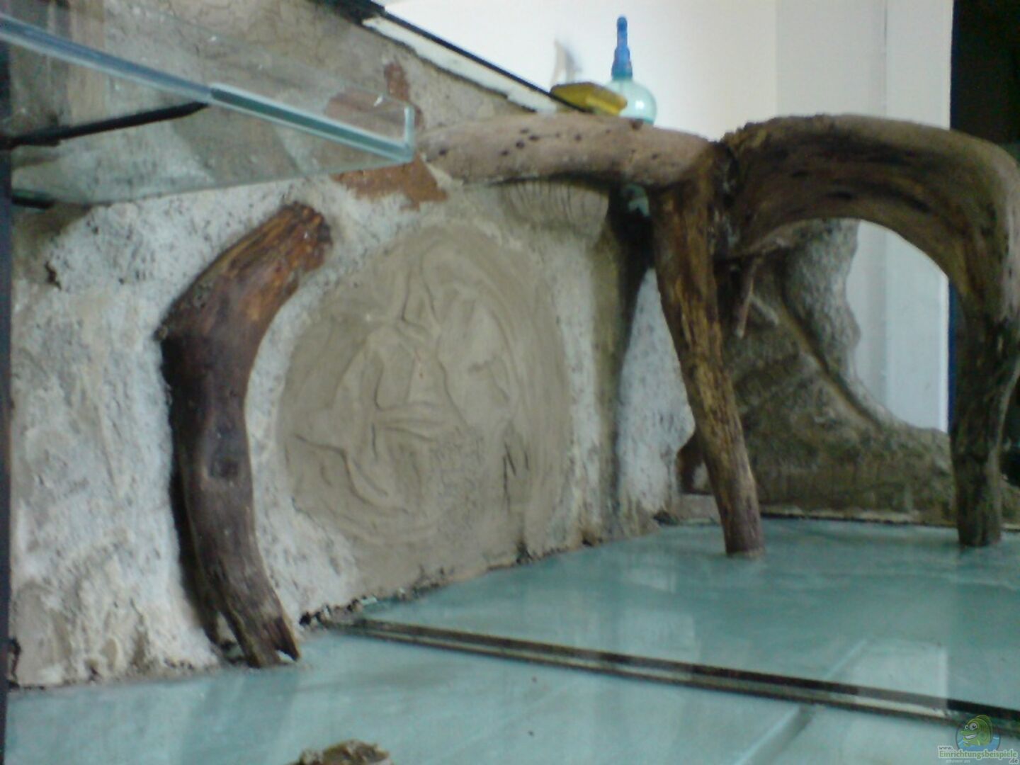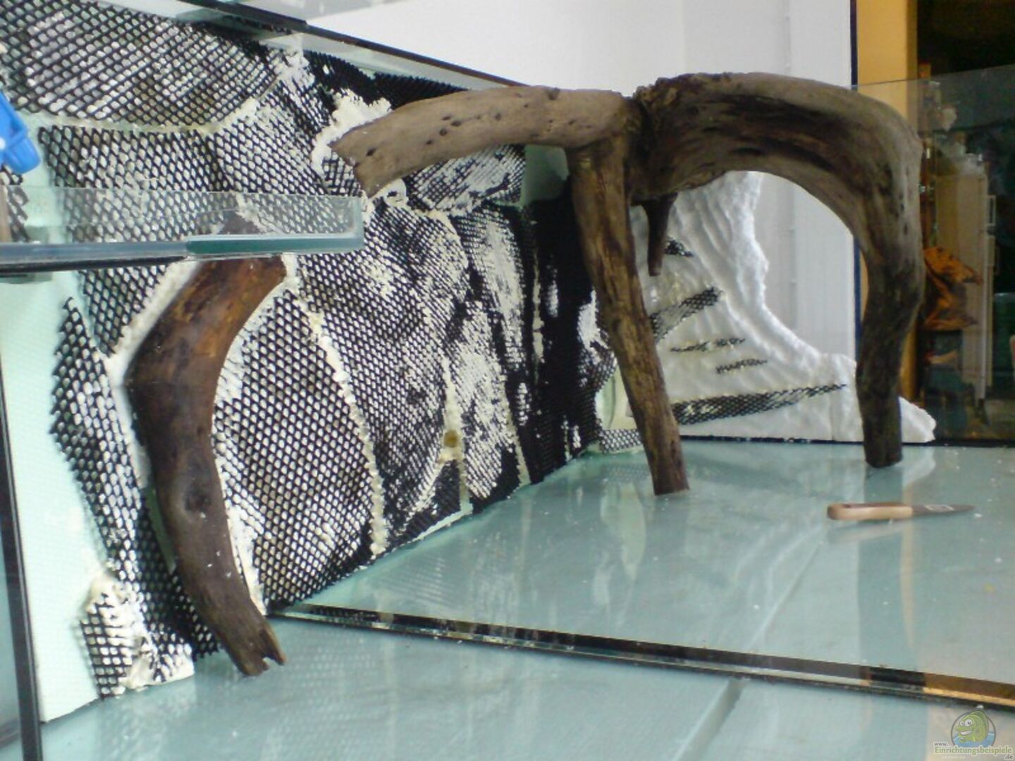 Komplette Rückwandgestaltung mit Treibholz und Eigenbaurückwand mit integrierter Wurzel