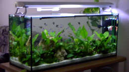 Habe jetzt alle 3 statt vorher nur 1 Leuchtstoffröhre brennen. Die Pumpe habe ich gedrosselt. Das ausströhmende Wasser wird auch nicht mehr zum Teil zur Wasseroberfläche umgeleitet. Wasseraufbereiter lasse ich dann halt in Zukunft weg, wenn der im Aquarium nichts zu suchen hat. Warum eigentlich nicht??? Wasserwerte haben sich nicht geändert. Werde mir demnächst genauere Test kaufen. Das Herumgerätsel mit den Streifen gefällt mir nicht.