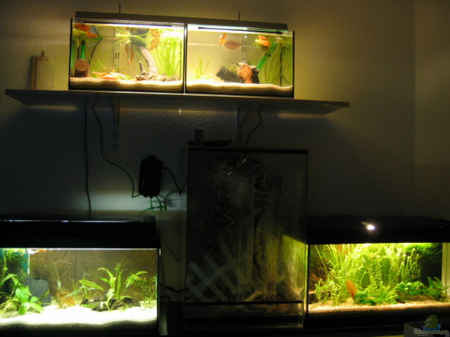 Eine Membranpumpe versorgt die Filter von 4 Garnelenbecken. 2 x 54 Liter und 2 x 25 Liter!