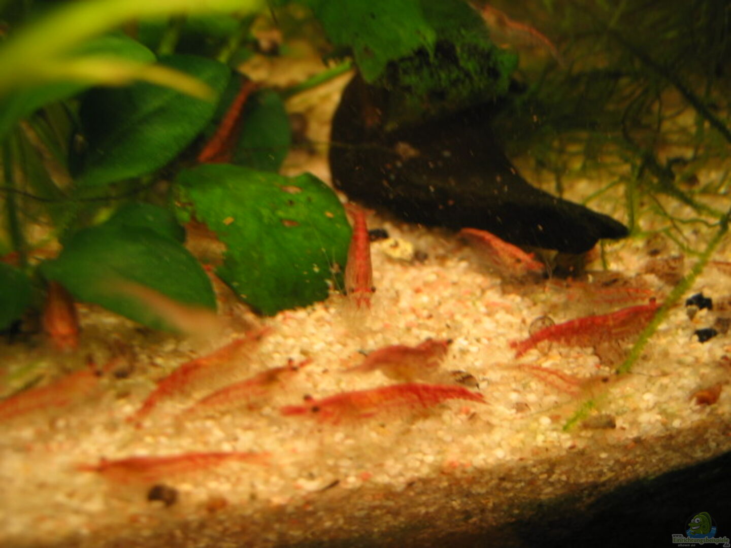Red-Fire Garnelen (ca 80 Stück) mit unzähligen Jungtieren im ´Gebüsch´, Turmdeckelschnecken, Blasenschnecken
