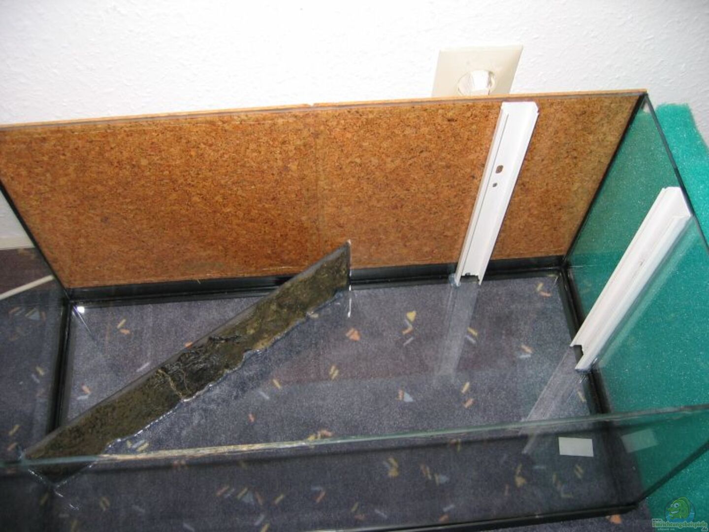 Rückwand besteht aus Korkplatten (das Becken ist aber so zugewuchert, da sieht man keine Rückwand mehr!)