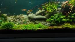 zum x.-Mal Neueinrichtung... wieder alles voll Algen... alles raus, alles wieder neu, diesmal mit neuem Bodengrund und neuen Pflanzen.