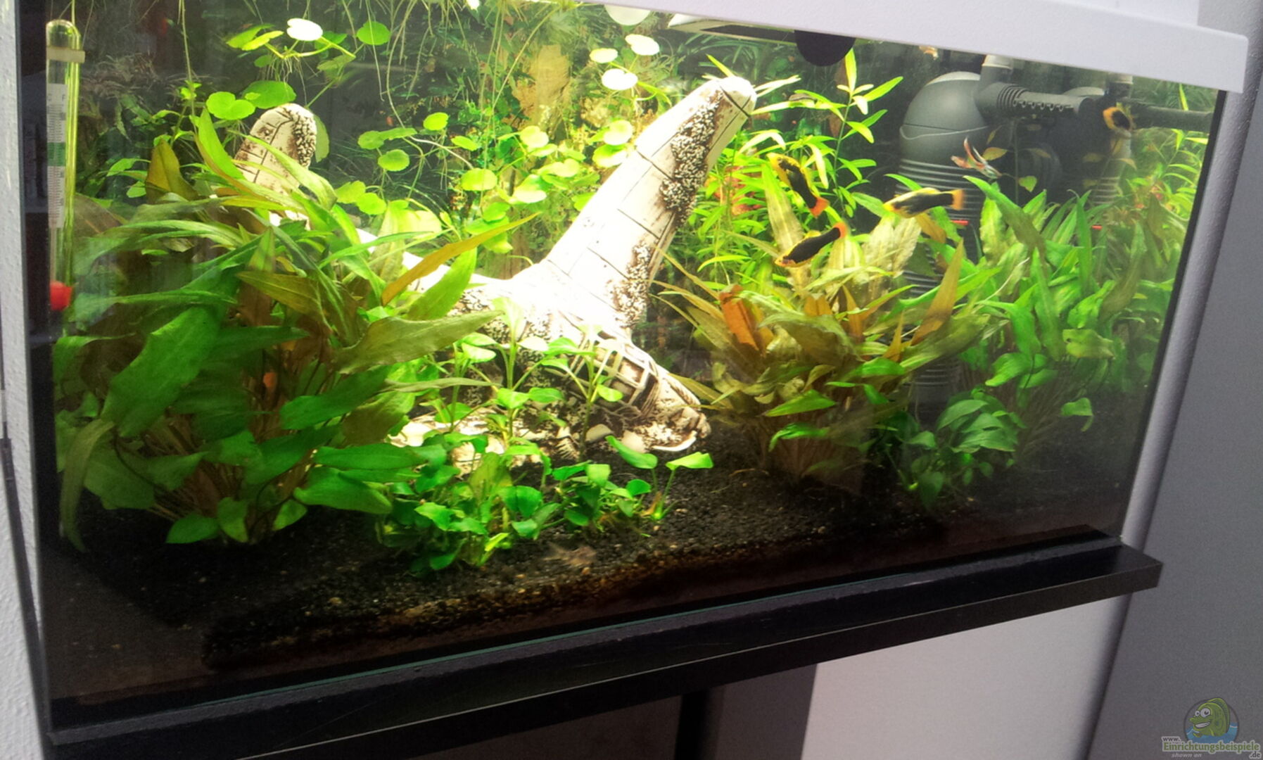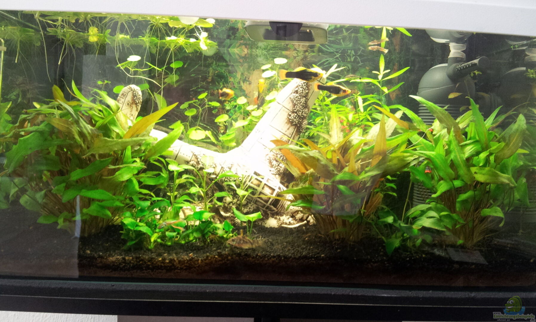 Mein erstes Aquarium, läuft seit über einem Jahr mittlerweile. Zu Beginn waren 7 Endler Guppys, 6 Otocinclus und 4 Panzerwelse im Becken. Au??erdem kamen Schmetterlingsbuntbarsche hinzu (laut Händler seien diese bei ihm an hartes Wasser gewöhnt!). Von den Guppys sind nur noch 2 übrig, die SBB haben nicht überlebt - den Fehler mache ich kein zweites Mal! Seit einigen Monaten sind nun Papageienplatys eingezogen, die Panzerwelse auf 6 aufgestockt.