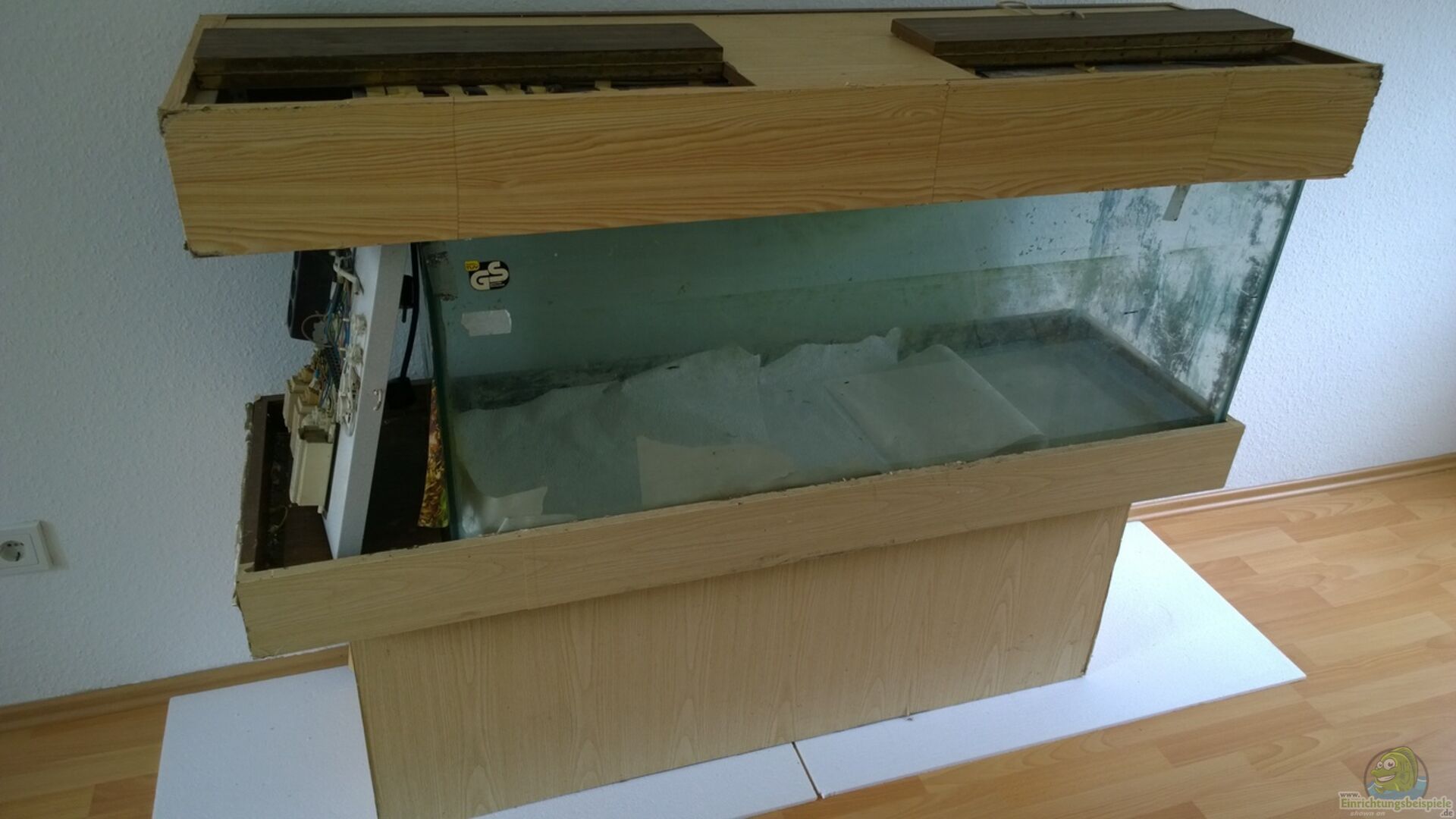 -Filtermaterial: Filterwatte, Tonröhren, und Torf. Filter lief vorher schon ca. 3 Monate am alten Becken.