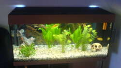 Hallo Jörg, bei diesem Becken ist vieles nicht ideal. 29 Fische aus 10 Arten sind für 200l kein guter Besatz. Totenkopf und Flugzeugwrack haben nichts in einem Aquarium zu suchen. Du schreibst:"gro?e Akzeptanz bei meinen Fischen" Wo sollen die sich auch sonst verstecken? Die Bepflanzung ist spärlich und schlecht aufgeteilt, gro?e Pflanzen sollten hinten- kleinere vorne stehen. Prachtschmerlen (fehlt beim Besatz wieder?) werden viel zu gro? für dein Becken und sollten genau wie Panzerwelse in grö?eren Gruppen gehalten werden. Ein Ausströmerstein ist unnötig und dein Kies ist zu grob und zu hell. Die Fische nur mit Trockenfutter abzuspeisen ist auch keine artgerechte Ernährung. Bitte als gut gemeinte Ratschläge verstehen, bei Fragen helfe ich gern weiter. Bitte nur bei "Private Nachricht" und nicht bei der Bewertung. Grü?e Stefan