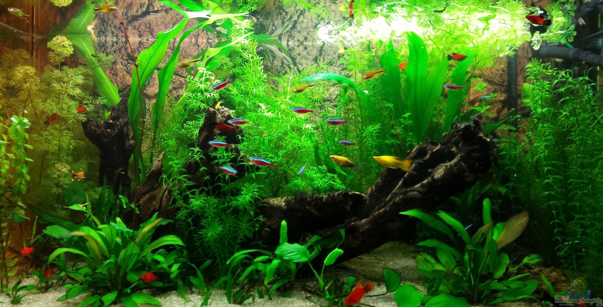 Zudem hast du mehr langsam wachsende Pflanzen im Becken als schnellwachsende. Ich würde einfach ein paar Büschel Hornkraut besorgen und die auf der Wasser oberfläche treiben lassen. Dadurch wird dein Becken abgedunkelt, was va die Salmler freuen wird und das Hornkraut entzieht dem Becken auch Nährstoffe und produziert auch Sauerstoff. Beides gut für deine Wasserwerte.