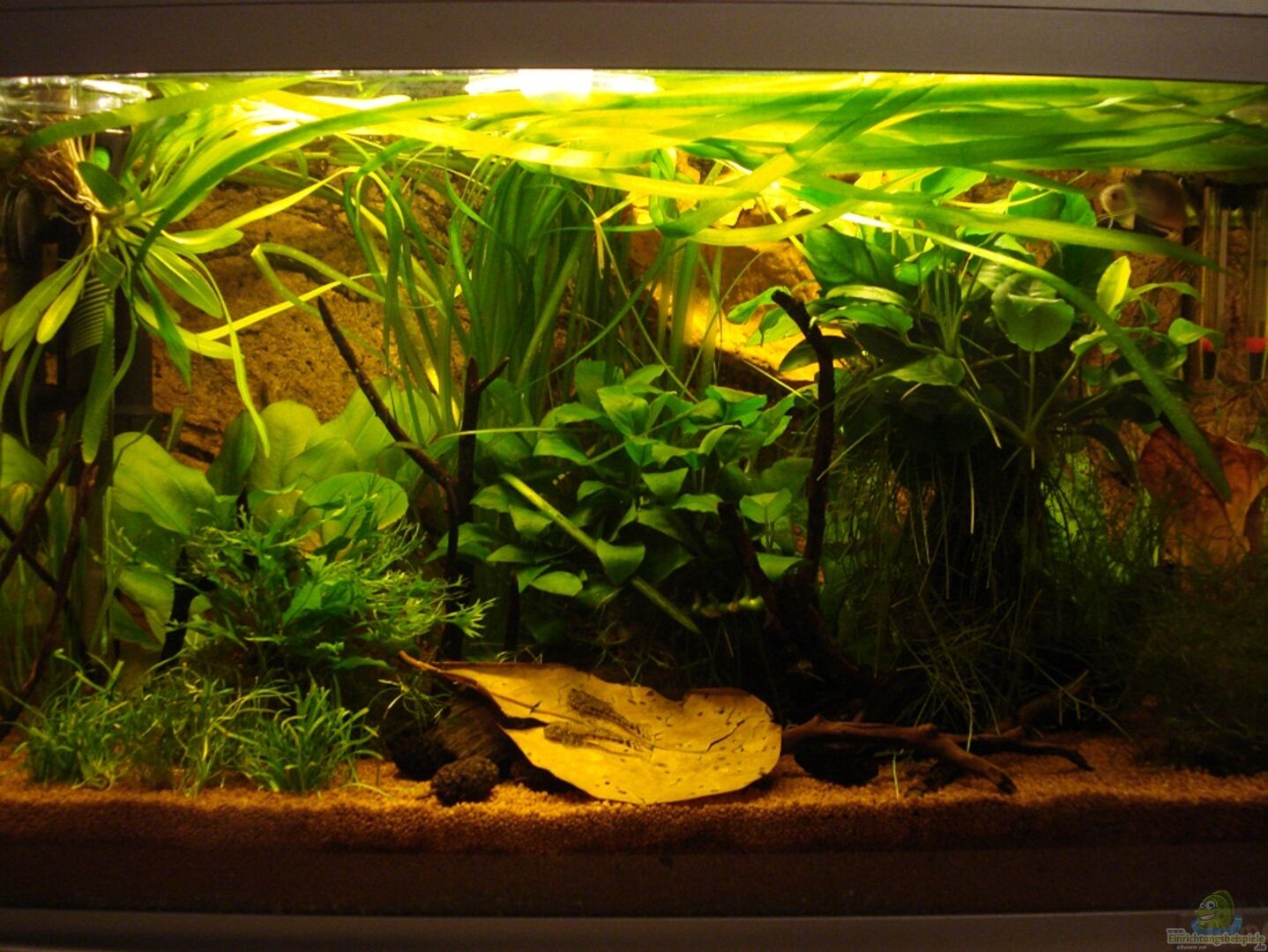 Um den Ph-Wert etwas zu senken wird über Torf gefiltert und regelmä??ig werden Seemandelbaumblätter und Erlenzapfen ins Becken hinzugegeben;