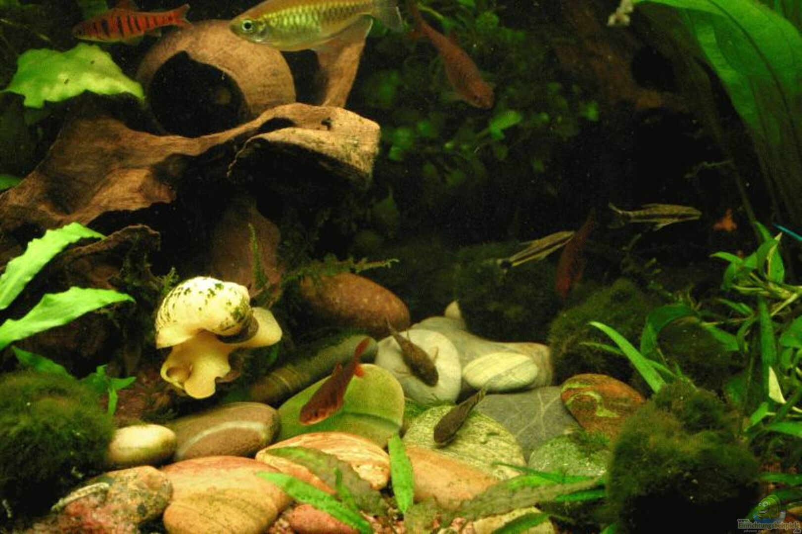 17.10. von 3 Ablaichrunden der Angolabarben haben es 2 Babys geschafft der eine ist 4 der andere 2 cm, der kleinste (unter 1cm) wird seit 2 Wochen vermi??t.