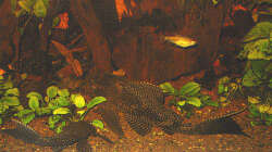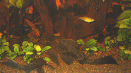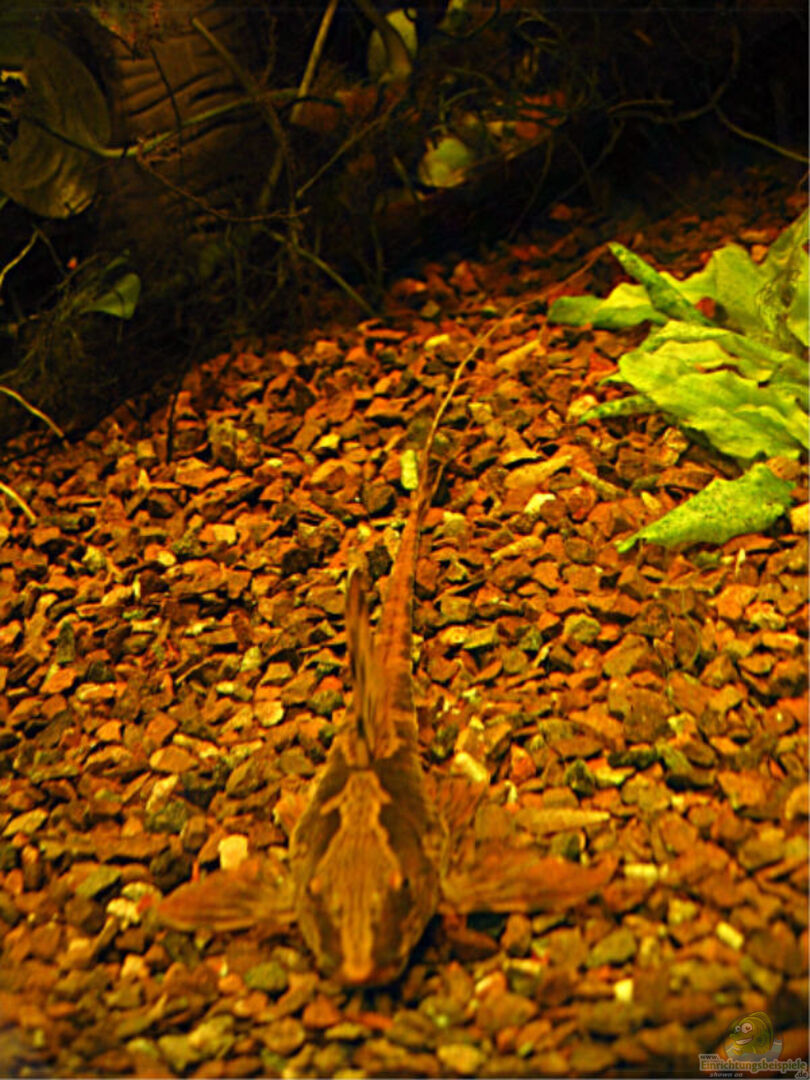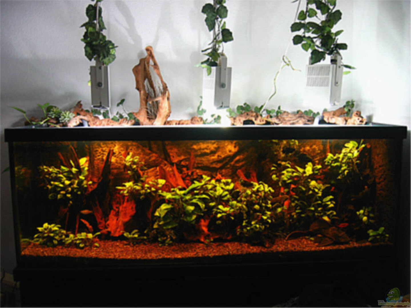 Das Becken war mal ein Schaubecken in einer Zoohandlung, die leider pleite ging und in einer Nacht-und Nebelaktion den Laden verlies.Das Becken habe ich dann in mehr oder weniger schlechtem Zustand (weil wochenlang nicht gepflegt und nicht gefüttert)vom Vermieter gekauft.2 Fische hatten sogar überlebt, ein Oto und ein Strurisoma aureum.