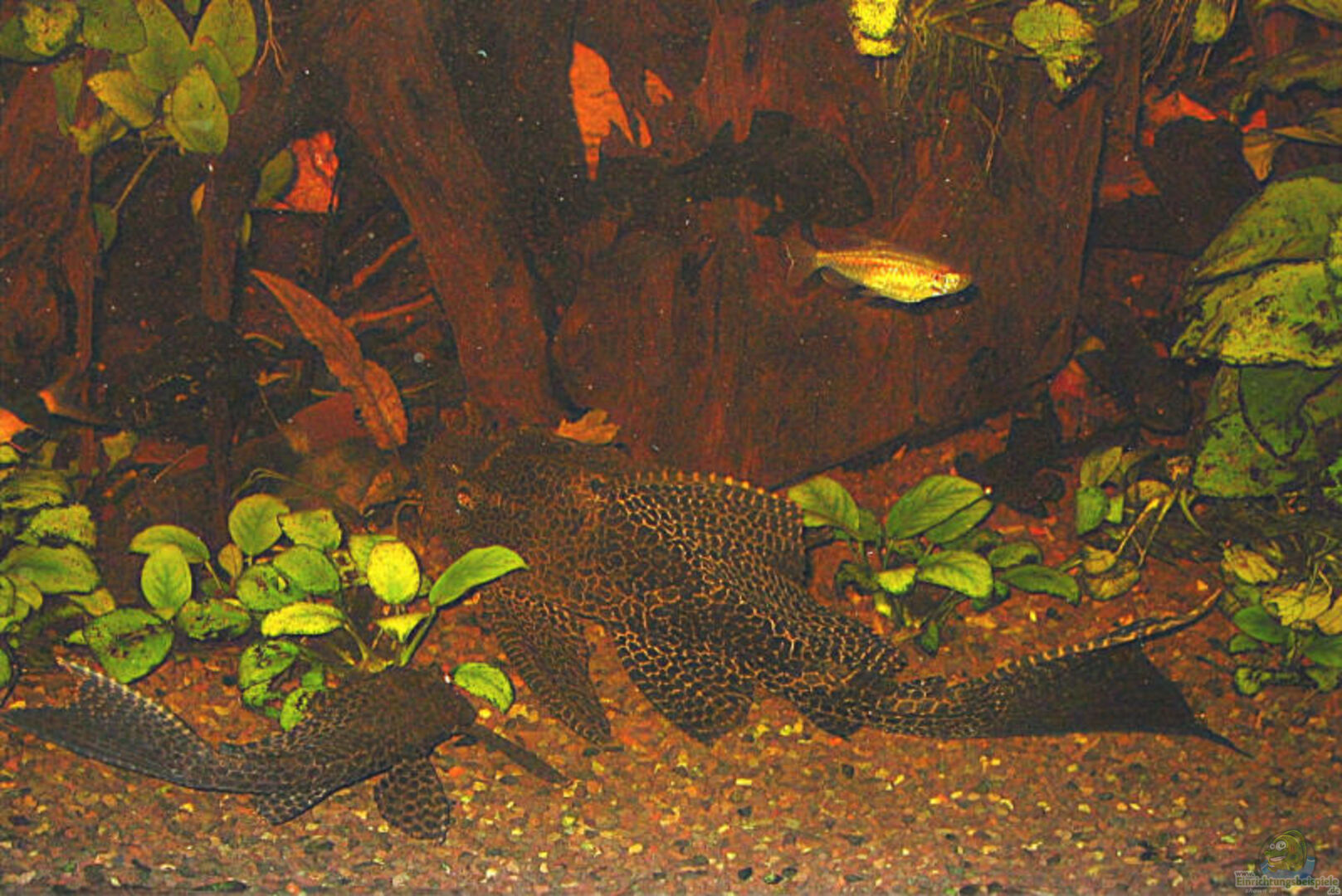 Wabenschilderwelse , 1x 30cm, 1x15cm, 1x4cm, 1x Red Bruno 15cm, 1 Panaque nigrolineatus, 1 Feueraal 50cm (Mu?? dazu sagen, da?? ich ihn nicht selbst gekauft habe sondern da?? er ein Geschenk war, hätt ihn bei der Grö??enprognose nie gekauft!! Fri??t ja auch wie jeck...)1 Strurisoma aureum, 4 Kongosalmler, 5 Astronotus, noch klein.2 Liniendornwelse, die ich leider nur nachts zu Gesicht bekomme...