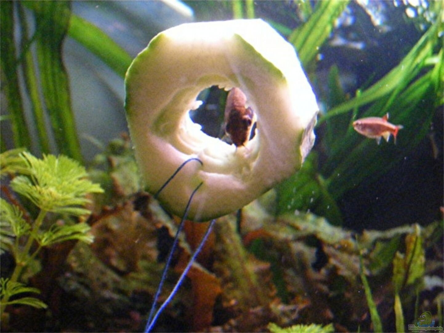 Hab heute zum ersten Mal Gurke verfüttert. Erst waren alle im Becken skeptisch, aber nach einer halben Stunde waren alle hoch erfreut darüber.