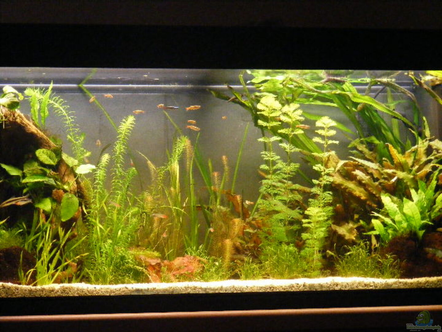 Mein Sohn hat jetzt das 60 l Becken in seinem Zimmer. Da kommen dann zum Umbau der Einrichtung meines gro??en Beckens die übrigen Fische rein. Das ist zugleich eine Srt Bewährungsprobe für meinen Buben. Wenn er ordentlich mithilft, bleibt es bei ihm stehen wenn die Umgestaltung beendet ist.