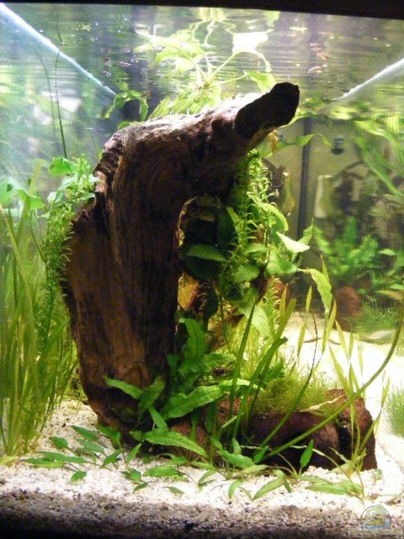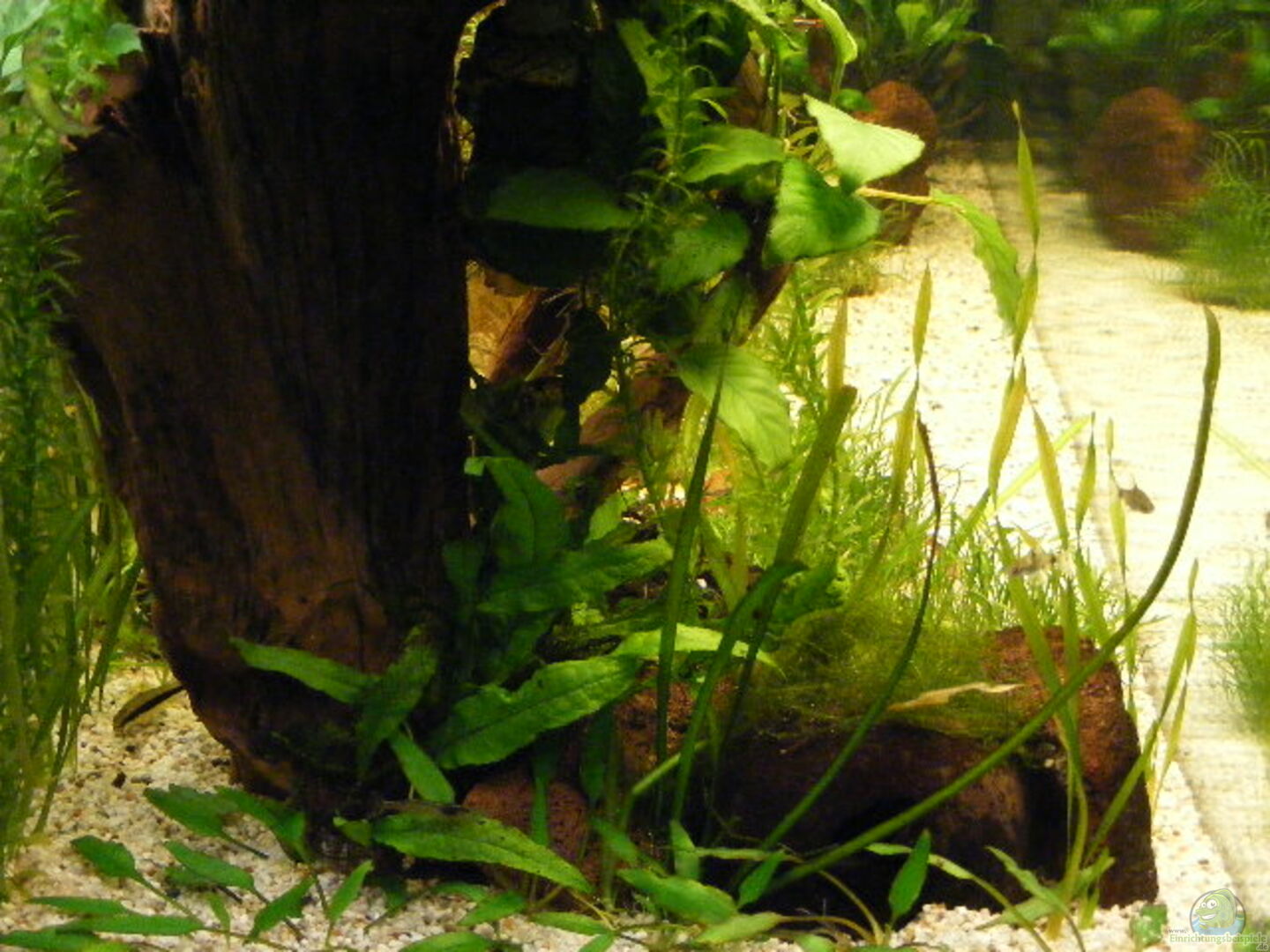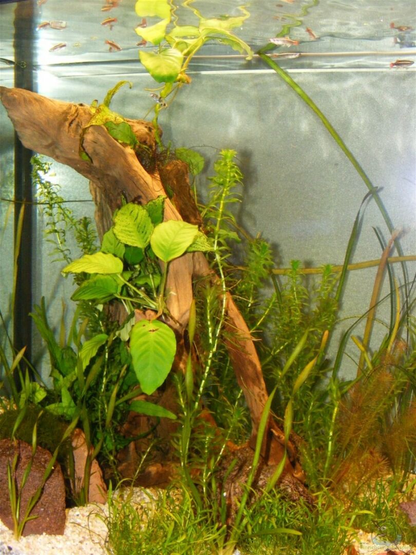 Danach Pflanzen rein und Deko verteilen. Die gro??e Wurzel versuch ich kleinzusägen, weil die so schön mit der Anubia umwachsen ist. Dann kommt sie noch hinten in ein Eck des Aquariums.